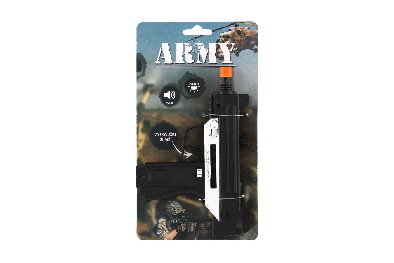 Pistole samopal plast 17,5cm na baterie se zvukem se světlem černá na kartě