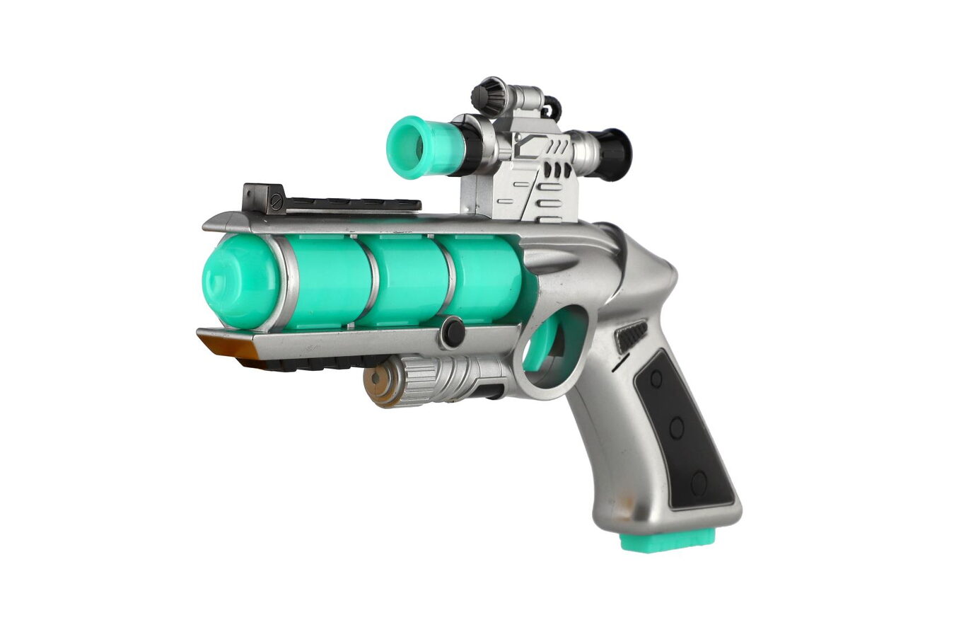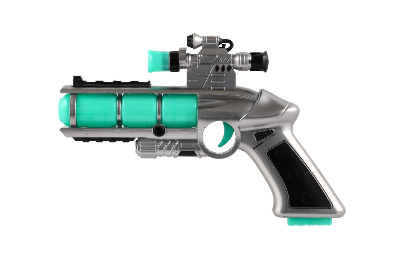 Pistole se zaměřovačem je reálně vypadající zbraň z plastu pro děti, bude se zajisté líbit všem klukům, kteří mají rádi zbraně. Po vložení baterií 2x AA vydává zvuky a svítí.