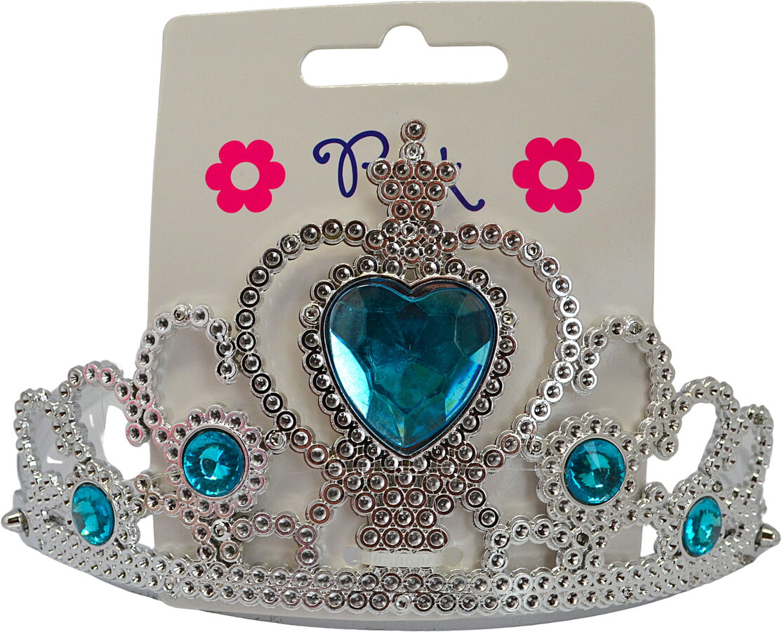 Plastová korunka na čelence ozdobená modrým akrylovým srdcem