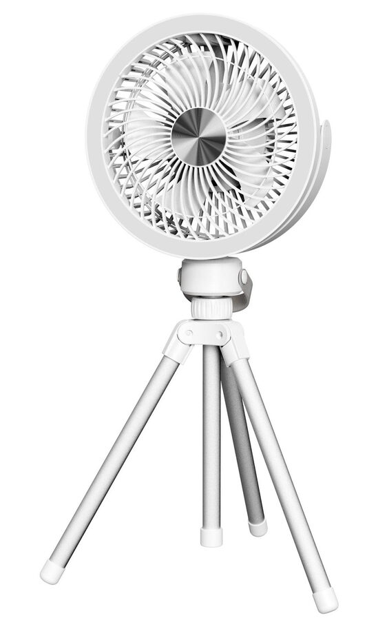 (BAL:1/20ks) Praktický a stylový nabíjecí ventilátor se stativem a vestavěným LED světlem. Vysoce kvalitní motor zaručuje tichý chod, energetickou účinnost a dlouhou životnost. Díky třem úrovním rychlosti ventilátoru můžete snadno upravit intenzitu chlazení podle svých preferencí. Nastavitelný stojan poskytuje stabilitu a umožňuje nastavit ventilátor do správného úhlu. Možnost umístění na stůl i podlahu, pověšení nebo zavěšení za háček. Díky vestavěné LED lampě je zařízení také ideální jako noční lampička.Průměr 20,5cm. Výkon ventilátoru: 8W.3 rychlosti.Výkon LED lampičky: 1,5W. Teplota chromatičnosti: 6000-6500K. Možnost nasměrování ve dvou osách. Výšková nastavitelnost: 46-62cm. Pracovní doba ventilátor: až 7,5 hodin.Pracovní doba LED lampička: až 4,5 hodin.Typ akumulátoru: 18650 Lithium ion 2kusy.Napětí a kapacita akumilátorů: 3,7V/2400mAh.LED indikátor stavu nabíjení.Nabíjení přes USB-C (1,5m kabel součástí balení).Doporučený nabíječ: 5V/2A (není součástí balení).Rozměry: 207x78x224mm.