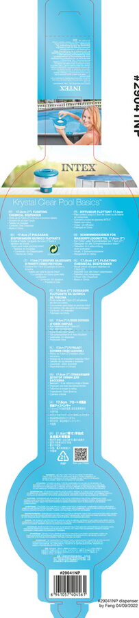 Pro tablety o velikosti max. 7,6 cm. Vyrobeno z odolného polypropylenu – nekorozivní materiál. Nastavitelný ovládací kroužek pro ovlivnění množství uvolňování chemie. Vhodné pro všechny bazény Intex. Tablety nejsou součástí balení.