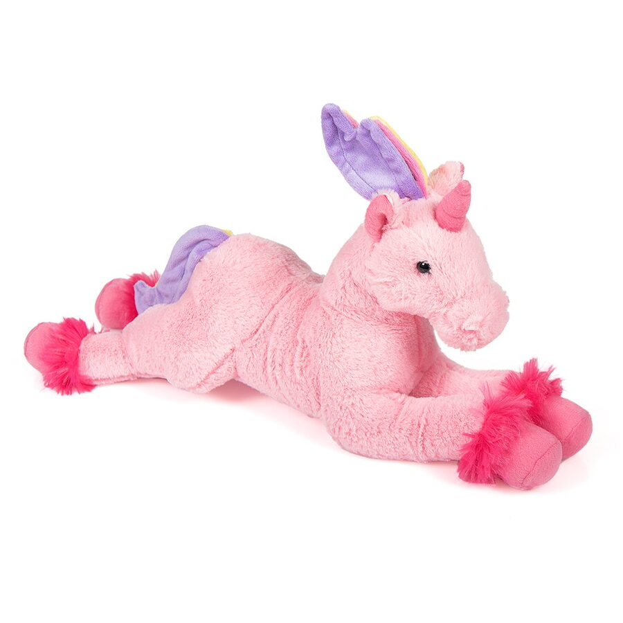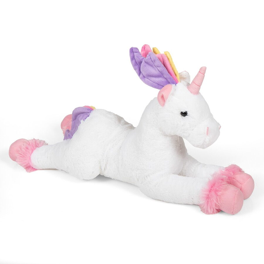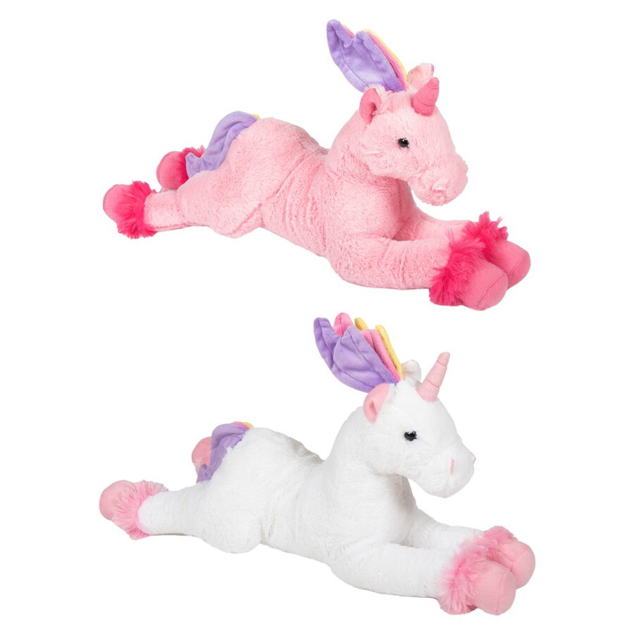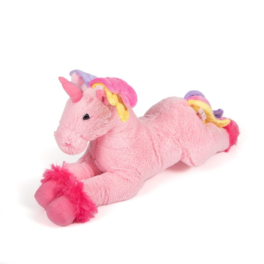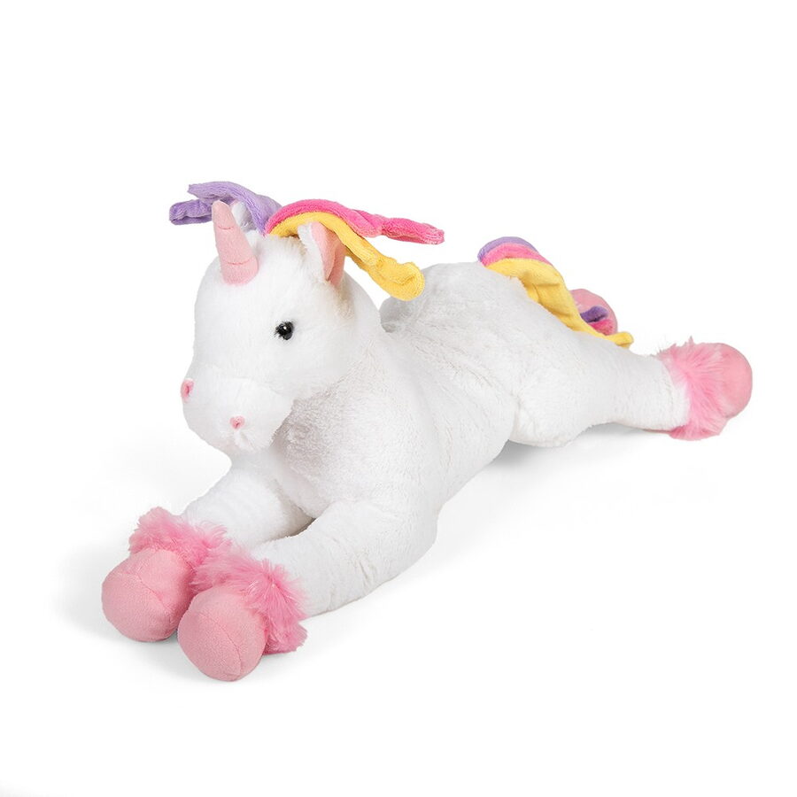 Plyšový jednorožec 43 cm – v růžové a bílé barvě s duhovou hřívou a ocasem. Vyrobeno z jemného plyše. Velikost 43 cm.