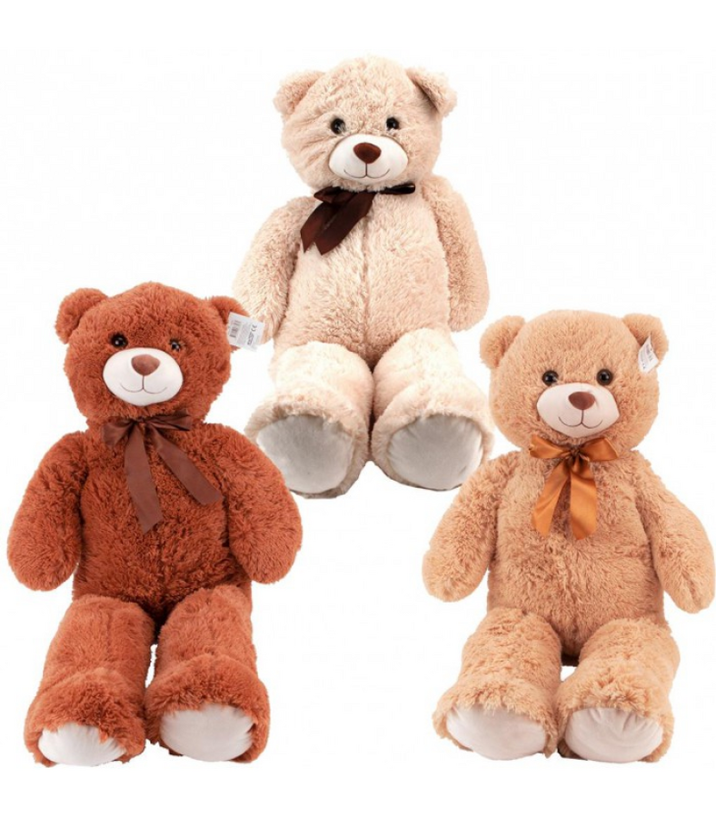 Velký plyšový medvídek o velikosti 100 cm ve třech barevných variantách – béžový, hnědý a světle hnědý. Hebký a měkký na dotek, ideální jako dárek pro děti i dospělé. Medvídek má ozdobnou mašli kolem krku a díky své velikosti je skvělým společníkem na mazlení i jako dekorace do dětského pokoje.
