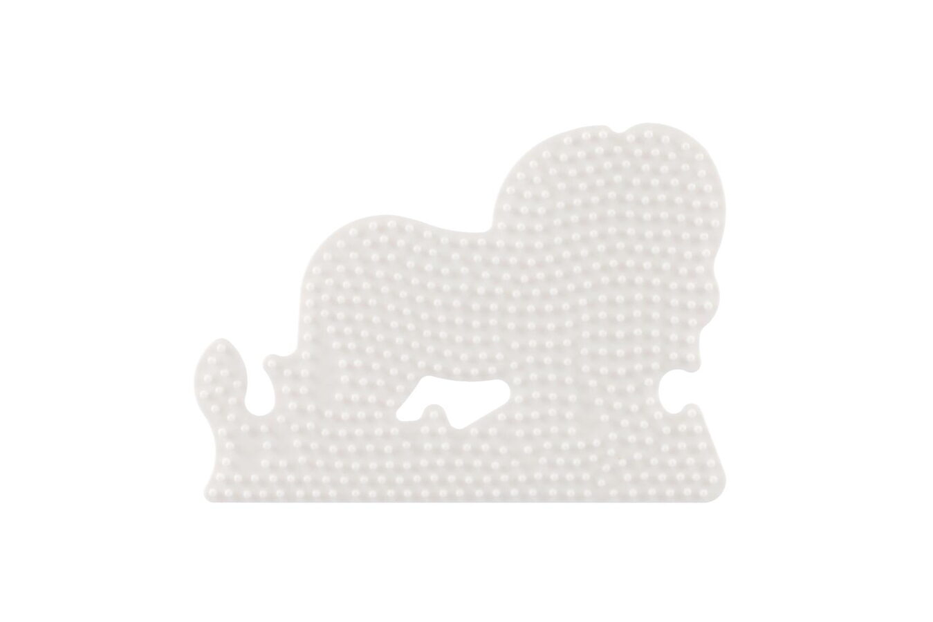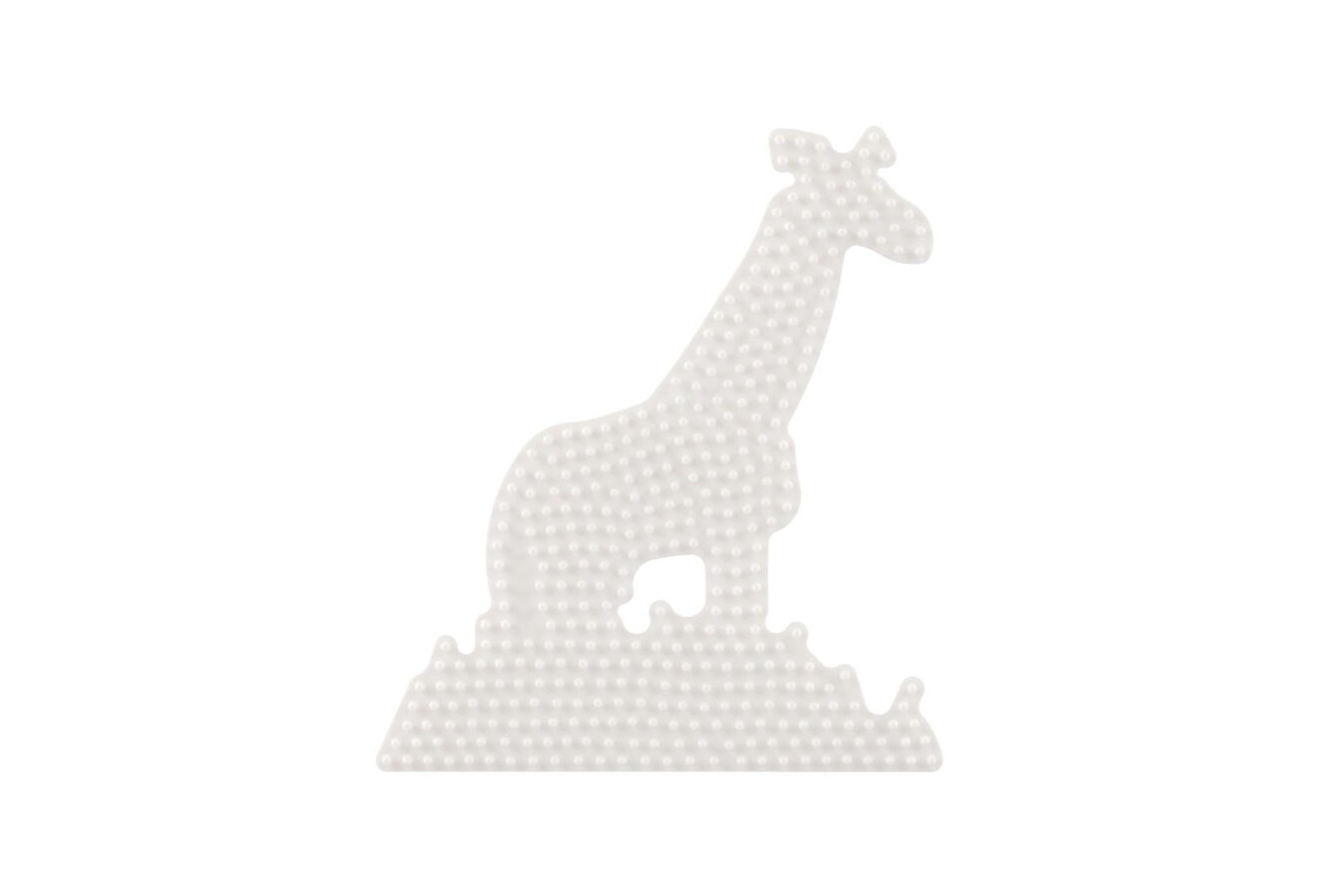 Pomůcka pro vytváření obrázků ze zažehlovacích korálků. Sada bílých plastových podložek obsahuje slona, žirafu, lva a velblouda.