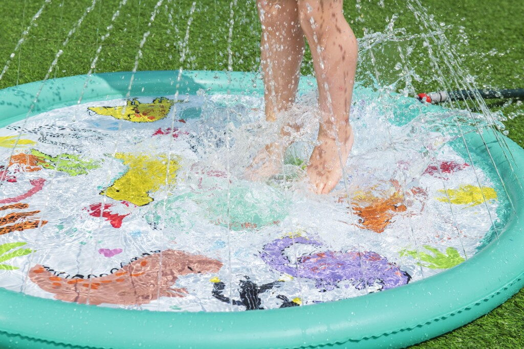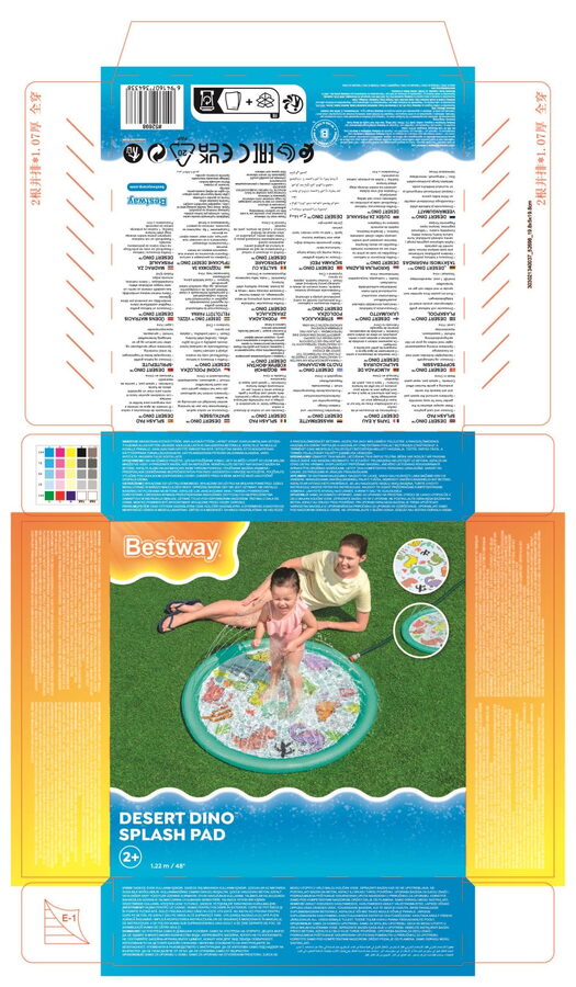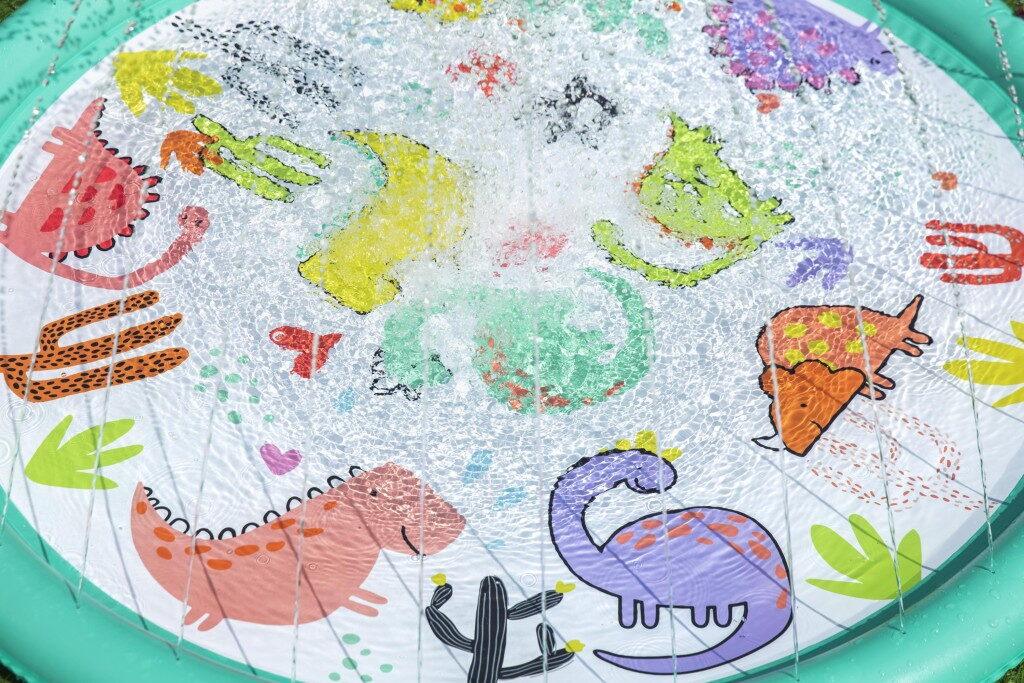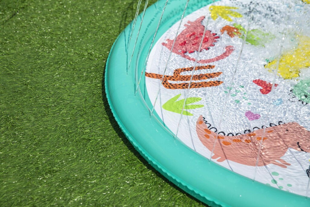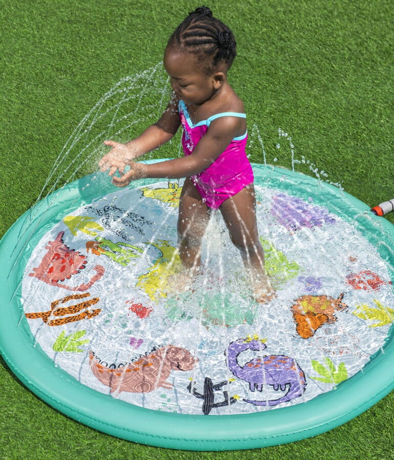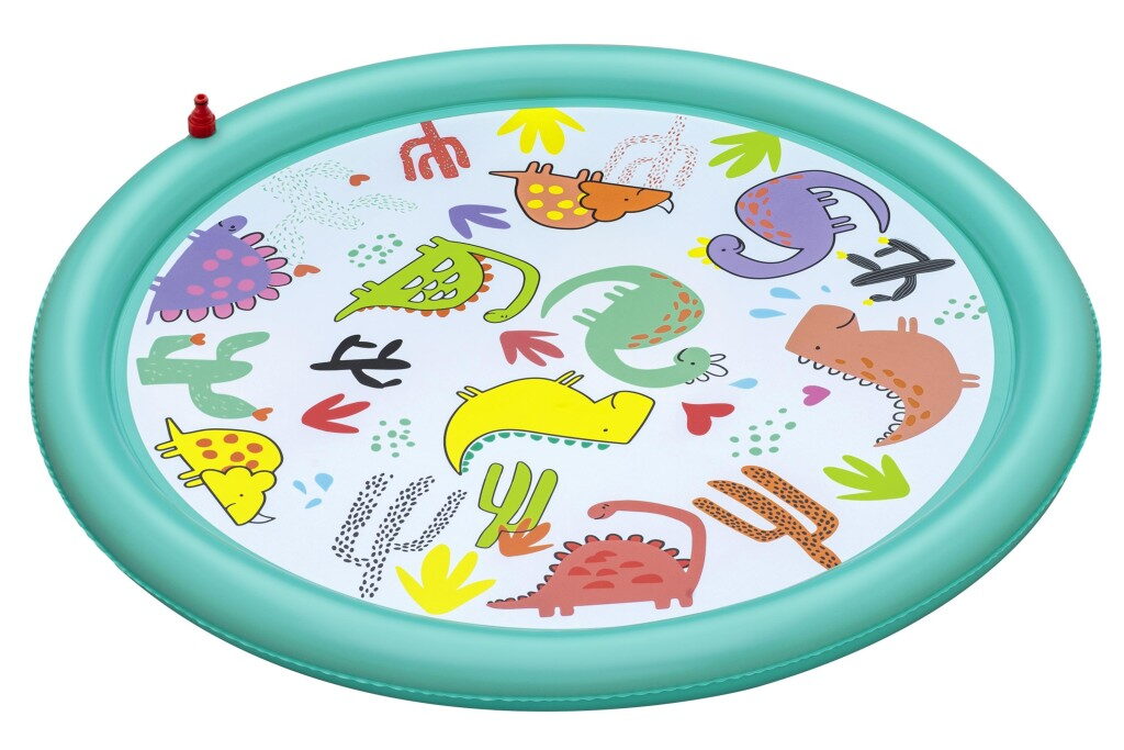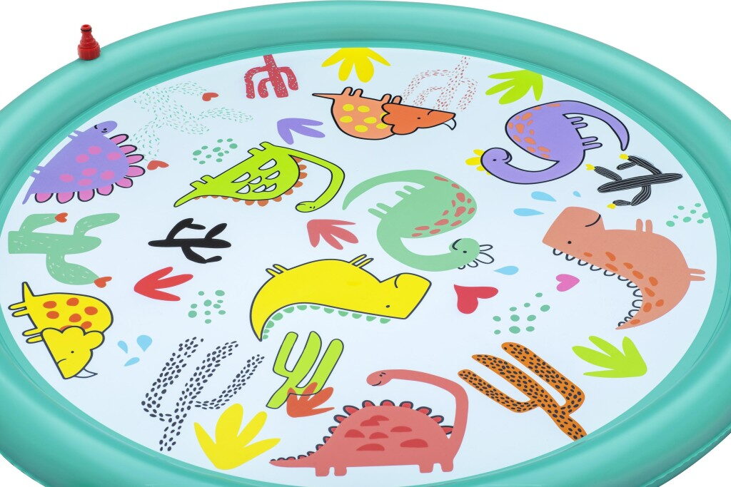 Podložka s veselým motivem dinosaurů je vzrušující atrakcí pro nejmenší v horkých dnech. Barevný motiv dinosaurů podněcuje představivost a tryskající voda zajišťuje osvěžení. Podložka je bezpečná a stabilní. Jednoduché připojení k zahradní hadici umožňuje rychlé zahájení hry a kompaktní rozměry (122 cm) umožňují umístění i v malé zahradě. Opravná záplata je součástí balení. Podložka má průměr 122 cm a systém jako u fontánky – regulace proudu vody.