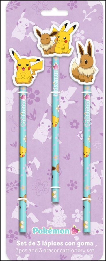 Pokémon sada 3 tužek s tvarovaným gumovým topperem - kolekce Flowers