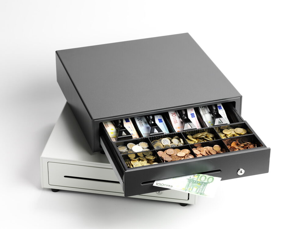 - Volitelné doplňky: držák bankovek, oddělovače, uzamykatelný kryt