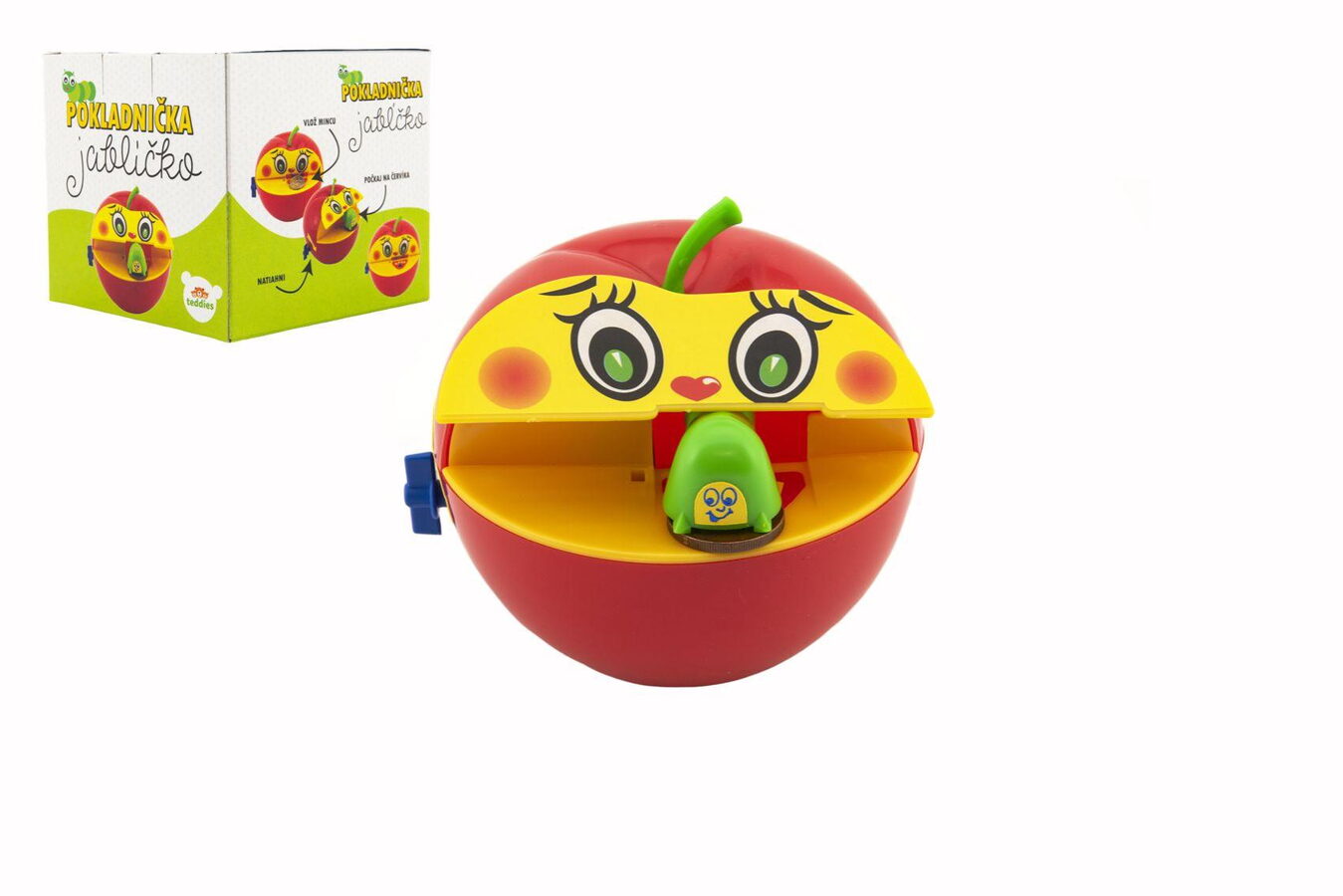 Plastová pokladnička jablko má mechanické natahování na klíček. Po vložení mince si červík minci vezme a ukryje ji v jablku. Mince lze vyndat po odklopení víčka na dně pokladničky.