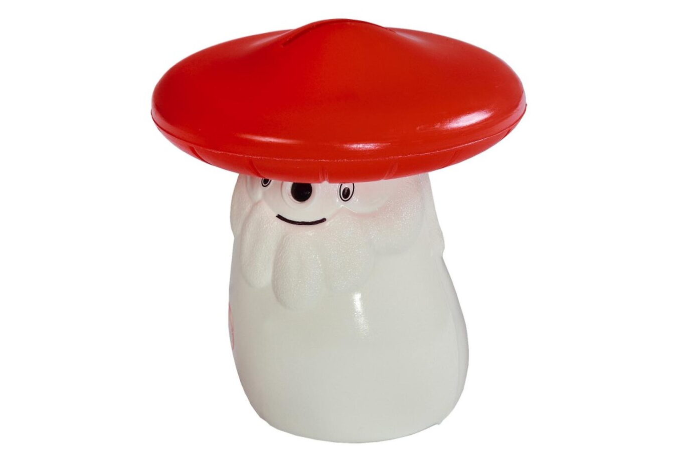 Dětská pokladnička (kasička) - Muchomůrka. Plastová pokladnička v podobě červené muchomůrky s odnímatelným kloboukem.