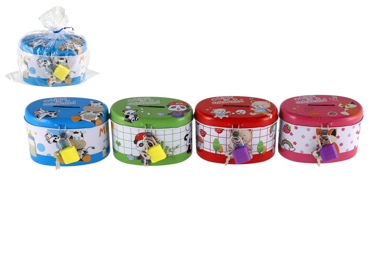 Pokladnička se zámkem plechová ovál 10x6cm 4 barvy v sáčku