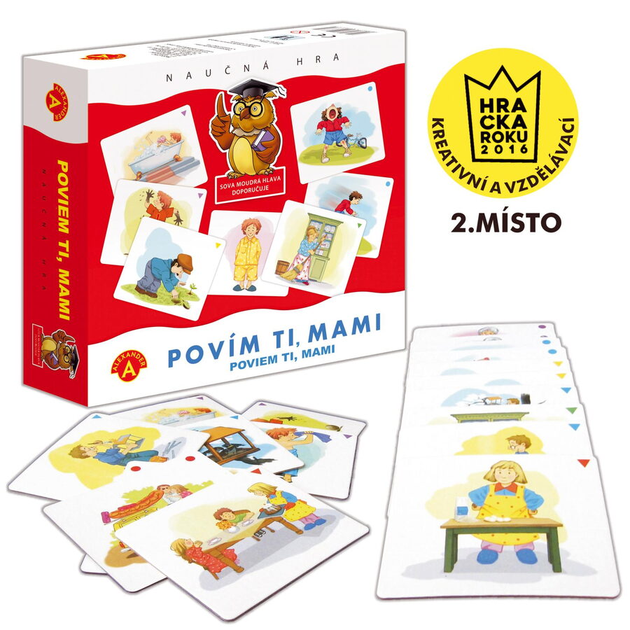 Didaktická hra a hračka ze série her Sova Moudrá hlava doporučuje. Pokračování úspešné hry Povím Ti, mami. Hra obsahuje 40 obrázků na destičkách, ze kterých můžete sestavit 10 logických příběhů. Každý příběh potom hráči-děti svými slovy vypráví ostatním spoluhráčům nebo rodičům. Hra rozvíjí představivost a vyjadřovací schopnosti, pomáhá chápat časové posloupnosti a cvičí logické myšlení. Hra je vhodná také pro zlepšení vyjadřovacích schopností předškoláků a prvňáčků. Obrázkové destičky můžete kombinovat s hrou Alexander Povím Ti, mami s jinou sadou zajímavých příběhů. Obsah balení: 20 destiček se 40-ti obrázky, český a slovenský návod ke hře.