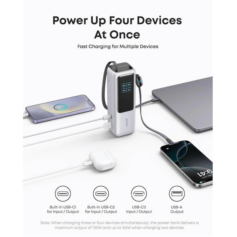 100W z libovolného portu USB-C Využijte naplno každý port USB-C, z nichž každý poskytuje 100W pro rychlé dobití powerbanky na 30 % kapacity za pouhých 20 minut.