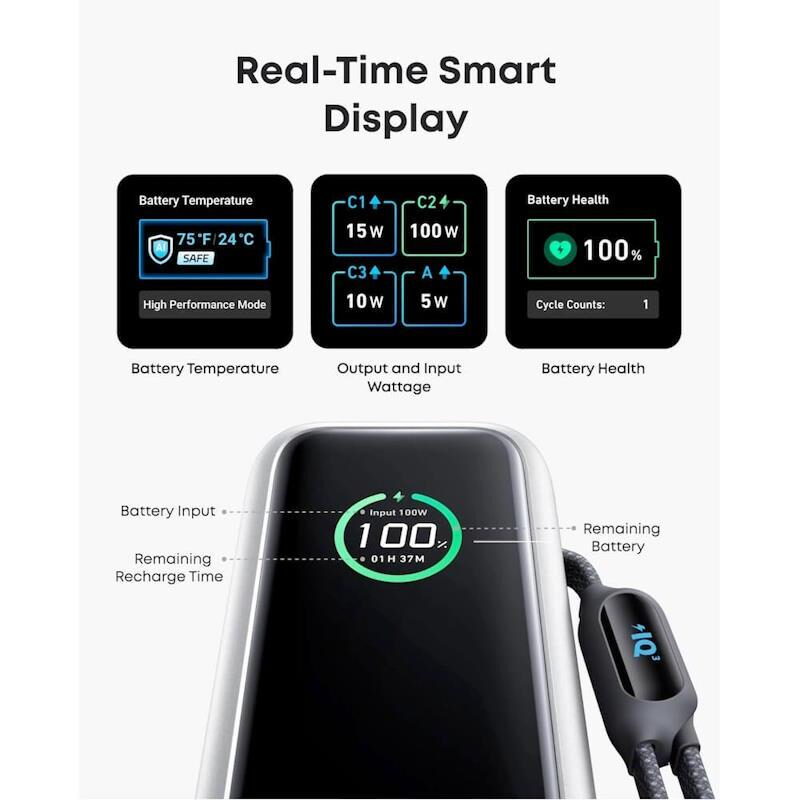Sledujte zbývající stav baterie, výstup, vstup, dobu dobíjení a další údaje díky chytrému displeji, který nabízí živé aktualizace.