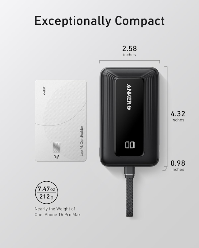 Podporuje 30W rychlé nabíjení přes vestavěný kabel USB-C nebo port USB-C.