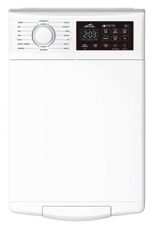 Vrchem plněná pračka ETA 384990000A o šířce pouhých 40 cm bude ideálním řešením pro menší koupelny. Nenechte se ale zmást jejími kompaktními rozměry. Uvnitř ukrývá silný digitální invertorový motor, který vyniká dlouhou životností a skvělým výkonem. Buben má kapacitu až 7 kg prádla a při ždímání dokáže vyvinout rychlost až 1 200 otáček za minutu. Pračka je vybavena přehledným elektronickým displejem. Spolu s praktickým otočným kolečkem si můžete nastavit program přesně podle vašich aktuálních potřeb. Pro maximální usnadnění je navíc vše popsáno v českém jazyce. Na výběr budete mít širokou nabídku programů, například program EKO, Syntetika, Džíny, Rychlé praní, Smíšený, Lůžkoviny i Dětský, který vypere a vymáchá prádlo pečlivěji, aby ochránil citlivou dětskou pokožku. Pro důkladné čištění pračky zvolte program Čištění bubnu, který zachová buben vaší pračky čistý a prodlouží jeho životnost. A pro rychlou volbu oblíbeného nastavení praní můžete využít "Můj Program".