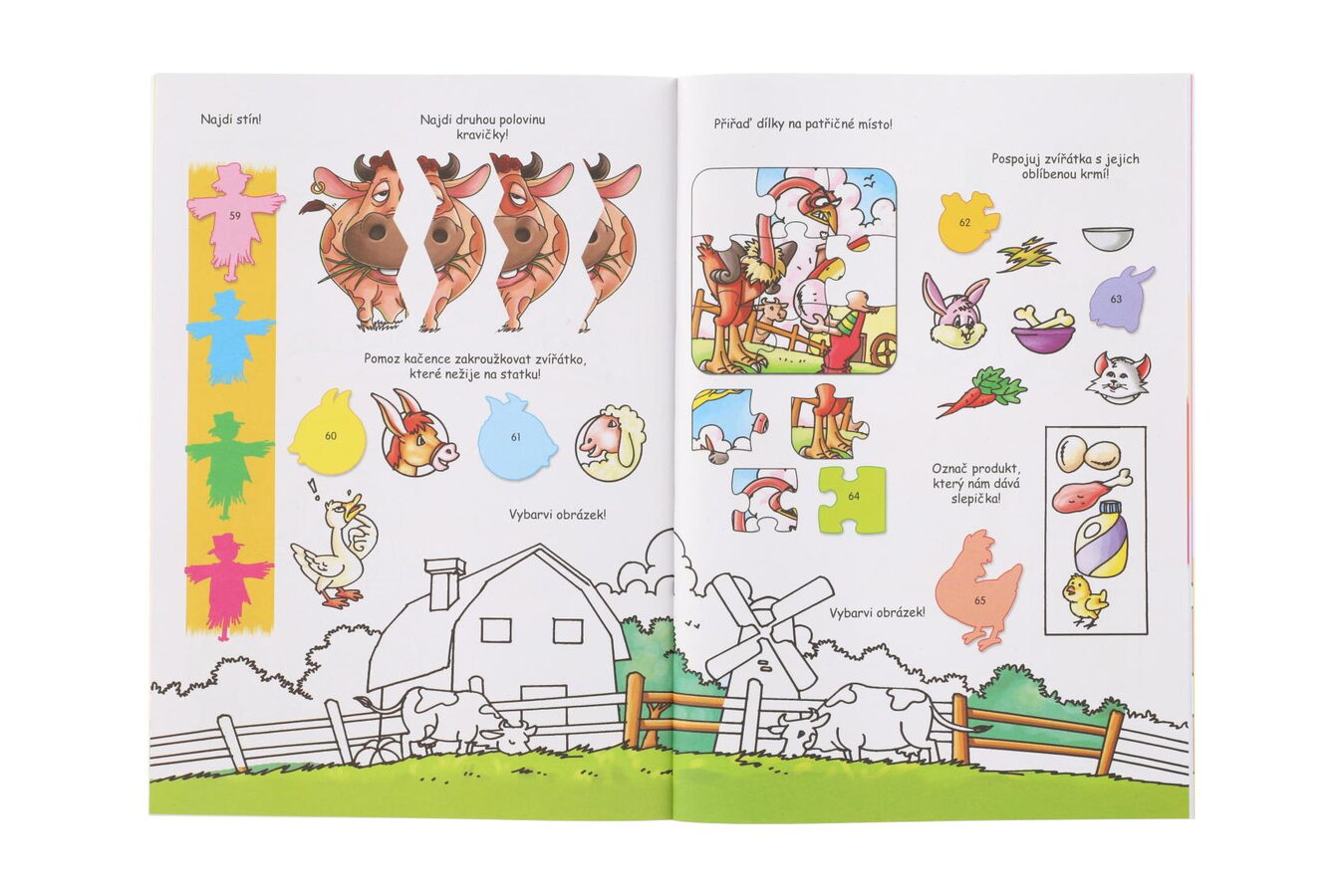 Zábavný pracovní sešit pro každou dlouhou chvíli se zvířátky na farmě! V sešitě najdeš 4 stránky nálepek a 16 stránek plných zábavných úkolů, rébusů, bludiští a spoustu dalšího. Dle čísel nalepte samolepky na správné místa a dotvořte si tak stránky k dokonalosti. S tímto pracovním sešitem si děti užijí zábavu a také podpoříte jejich logické myšlení.