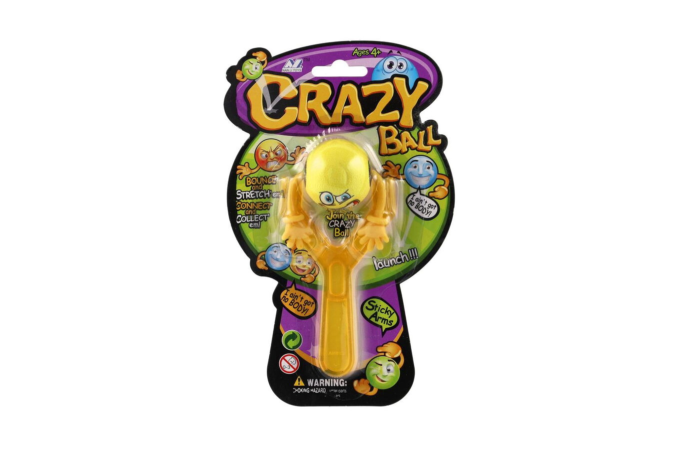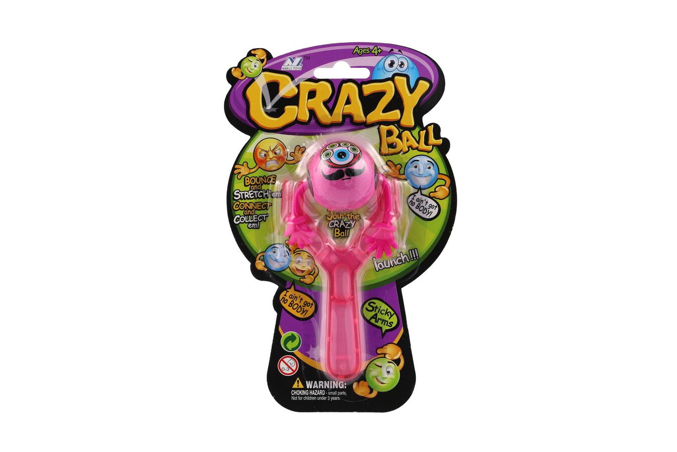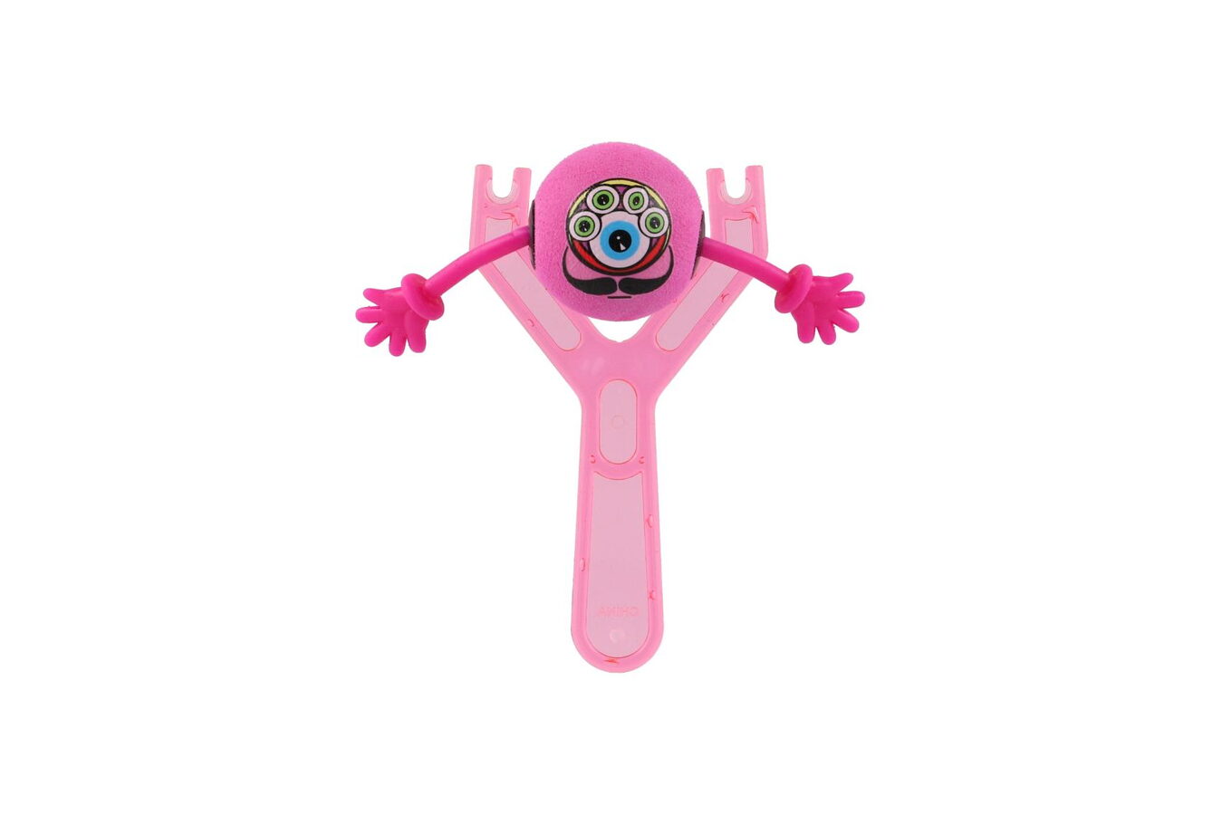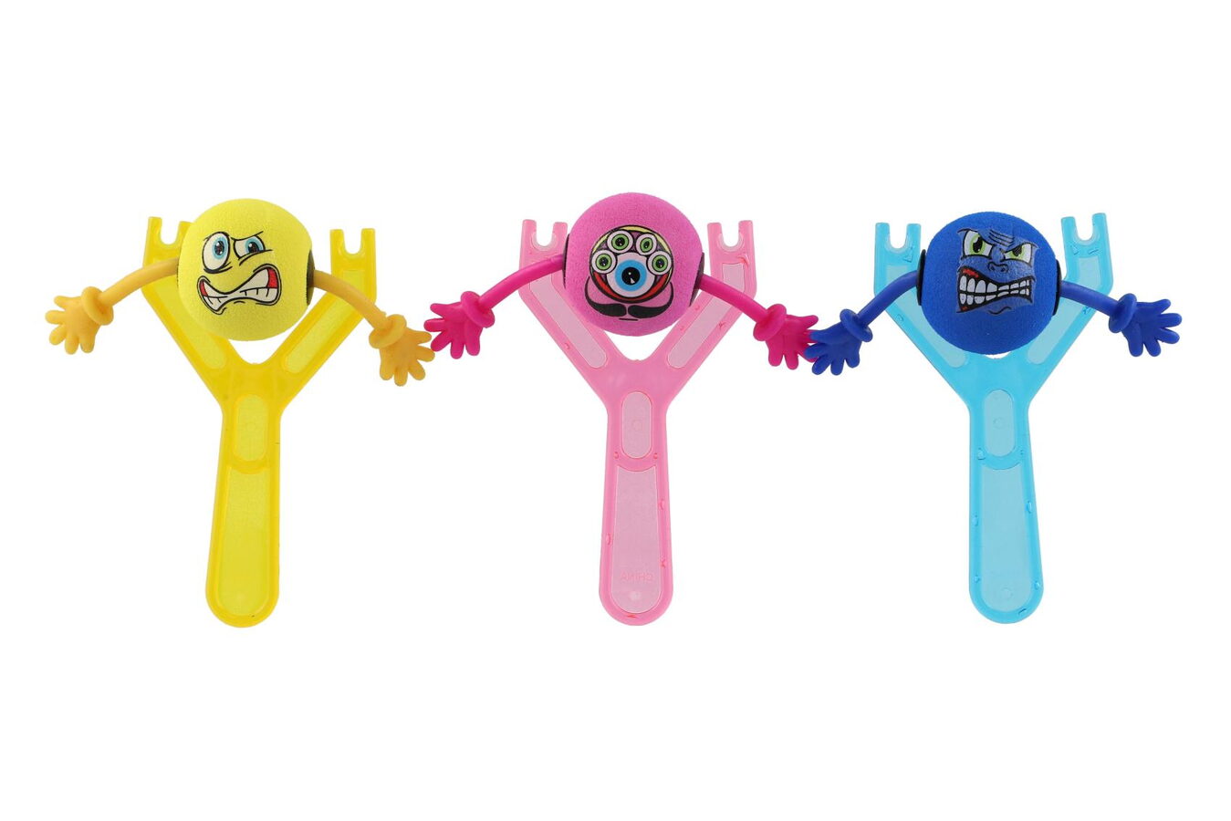 Zábavný plastový prak na míčky s ručičkami a s motivy smajlíků. Namiř a vystřel!