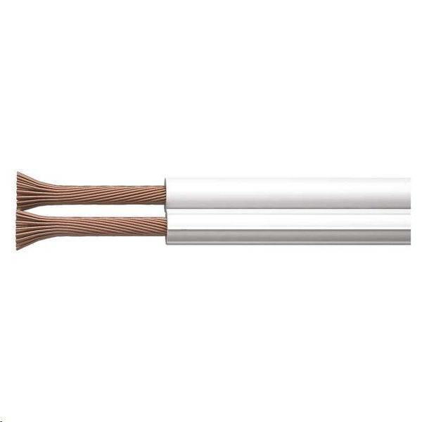 Dvojlinka od českého výrobce TEKABEN. Prodejce PREKAB.CYH 2x0,75 B Kabel V03VH-H 2x0,75 mm ohebný - bílýBarva pláště: bíláPočet žil: 2 x 0,75 mmVíceučelový dvojžilový vodič (dvojlinka) s kroucenými žílami z měkkých měděných drátů izolací z PVC. Používá se pro instalace v suchých prostorech k propojování LED pásků, reproduktorů s audio zařízením, adt.Cena za 100m