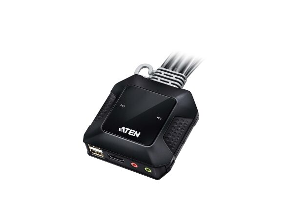 Přepínač Aten KVM vám umožňuje ovládat 2 počítače (USB klávesnice, HDMI video + audio, USB myš) z jednoho stanoviště. Počítače můžete startovat bez nutnosti přepnutí. Ovládáte oba počítače pomocí jedné konzole.