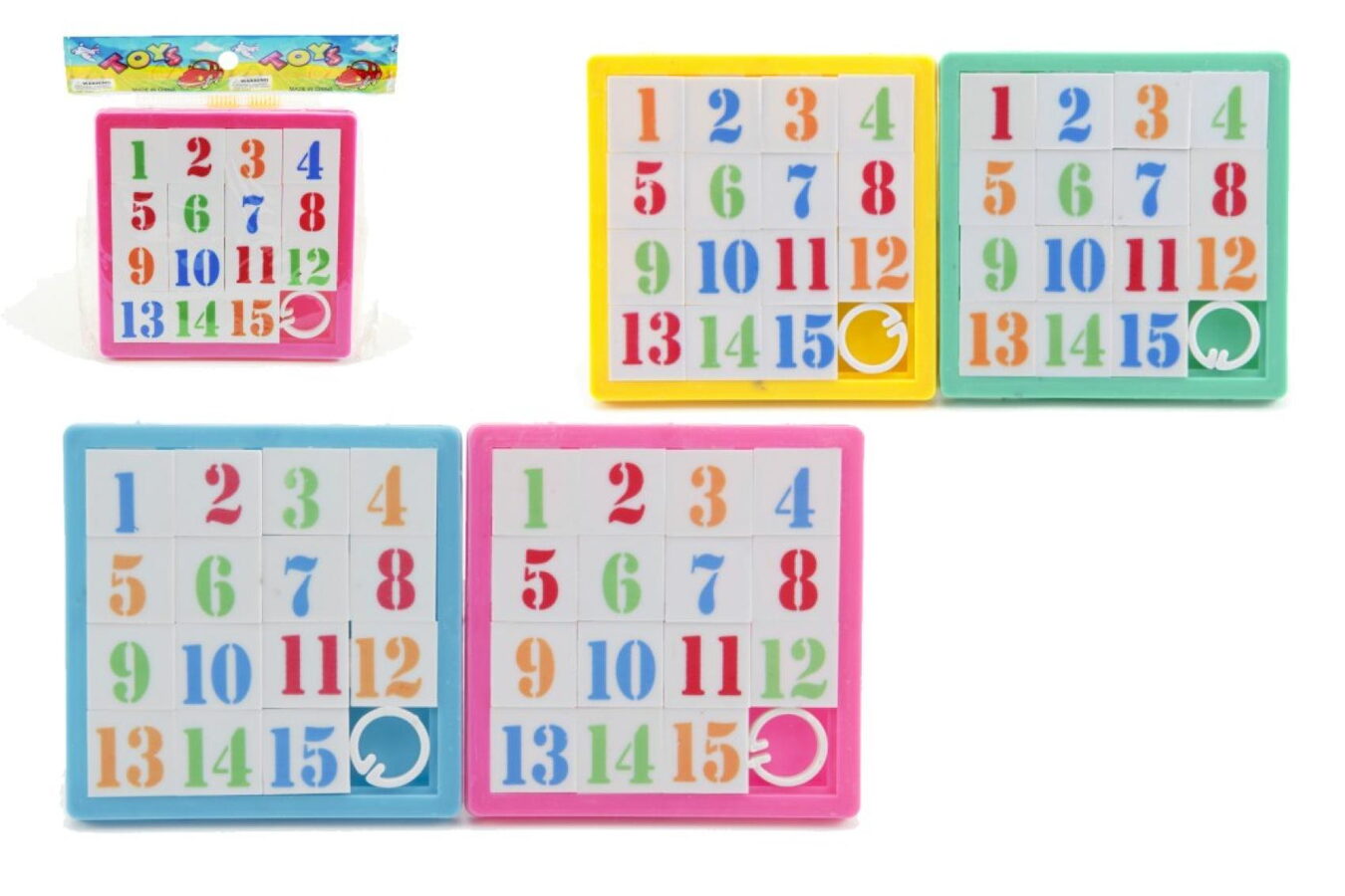 Přesouvačka hlavolam čísla plast 8x8cm asst 4 barvy v sáčku
