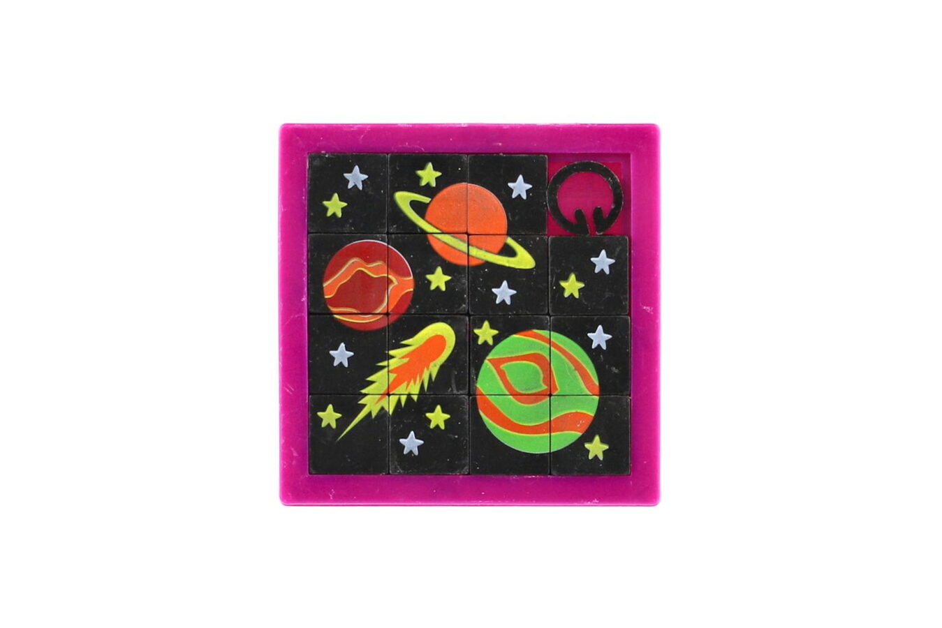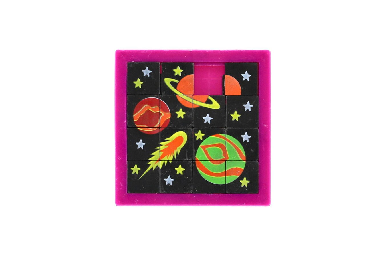 Klasická přesouvačka s obrázkem Vesmíru se postará dětem o zábavu kdekoliv. Přesouváním kostiček se vytvoří obrázek. Malý a lehký hlavolam může dětem krátit čas také na cestách.
