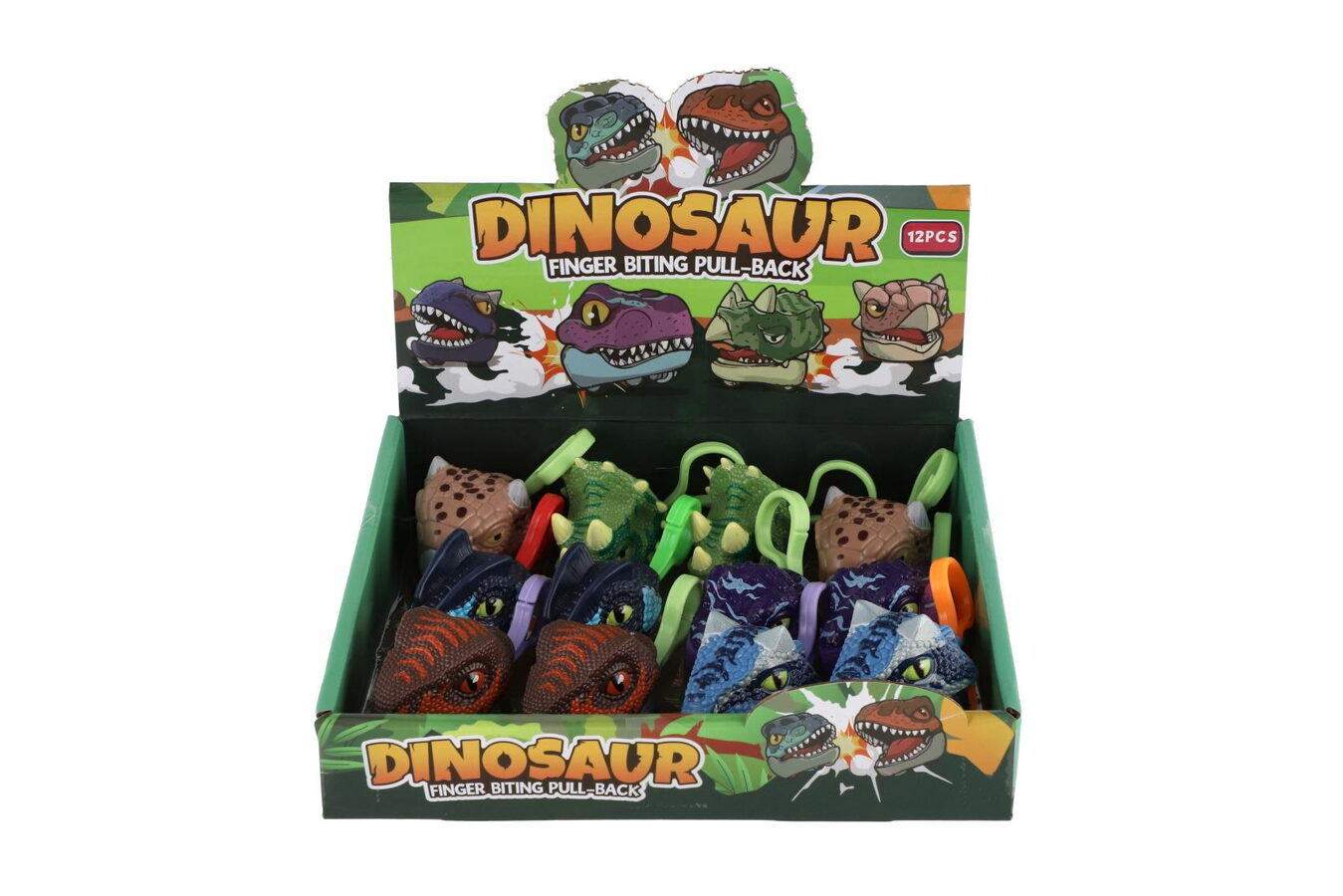 Přívěsek na klíče hlava dinosaurus kousací plast 6cm na setrvačník 6 druhů 12ks v boxu