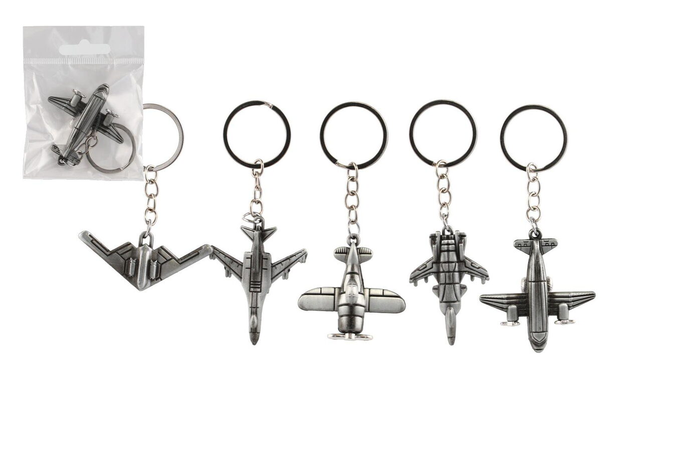 Přívěsek na klíče letadlo kov 5-6cm 5 druhů v sáčku