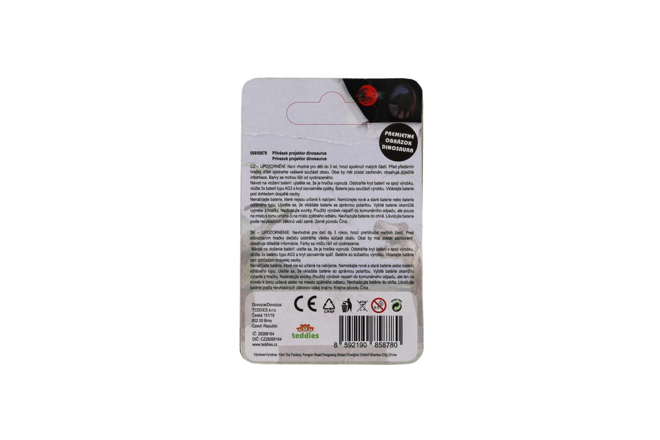 Přívěsek projektor dinosaurus plast 4cm na baterie se světlem 5 druhů na kartě 7x11cm