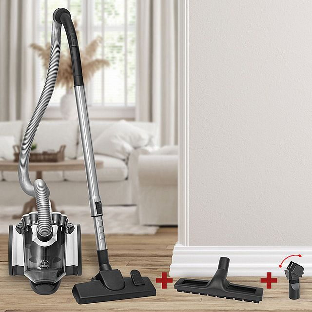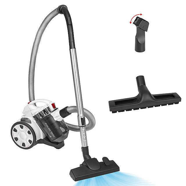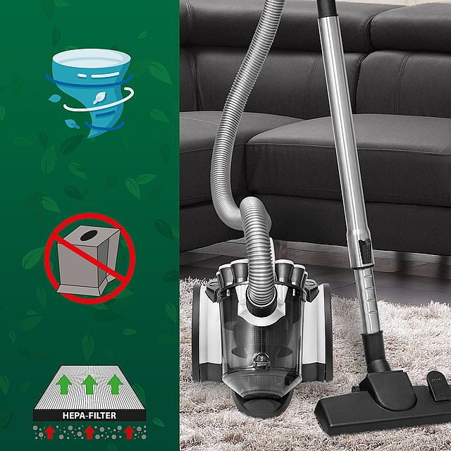 Podlahový ECO - Cyclon Twin-Spin vysavač s energeticky úsporným výkonem 700 W. Díky bezsáčkové technologii není potřeba kupovat často předražené sáčky do vysavače. Přístroj je vybaven nástavcem na parket a dlažbu a přepínacím nástavcem s kartáčem. Nečistoty se čistí přes 4vrstvý filtrační systém, ve kterém se zachytí nečistoty včetně prachu. Výkon vysávání lze nastavit. Díky pogumovaným kolečkům je vysavač vhodný i pro citlivější povrchy. Teleskopická kovová trubka s nastavitelnou výškou umožňuje přizpůsobení uživateli dle jeho výšky. Tělo vysavače je opatřeno rukojetí pro snadný transport.Kabel se navijí automaticky stisknutím tlačítka. Součástí balení je podlahový kartáč, nástavec na pevné povrchy a štěrbinová hubice s kartáčkem. Napájení je 220-240 V, 50/60 Hz, 700 W.