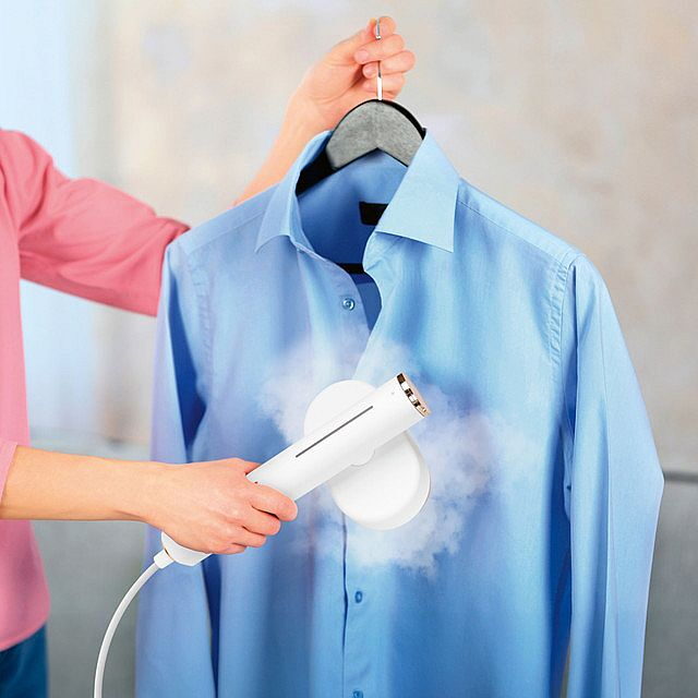 Zařízení je vybaveno sedmi parními tryskami pro rovnoměrné a šetrné vyhlazení tkanin. Díky dlouhému napájecímu kabelu (1,9 m) je práce s přístrojem pohodlná i při napařování zavěšeného oblečení, záclon nebo závěsů. Samozřejmostí je parní tlačítko, kontrolka provozu a ochrana proti přehřátí.