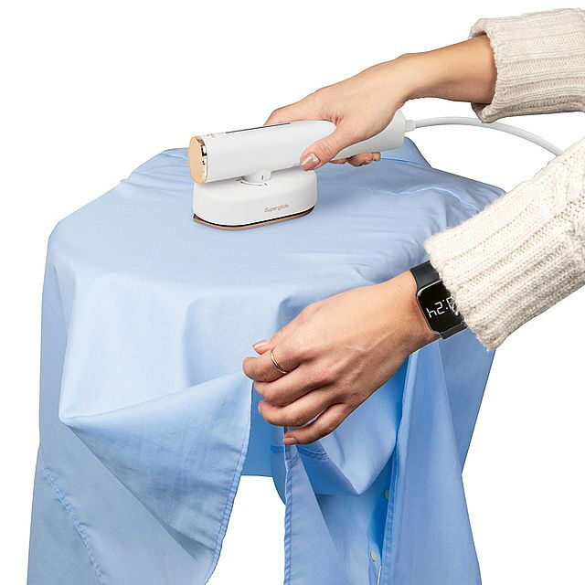 Keramická žehlicí plocha „Superglide“ je odolná proti poškrábání a zajišťuje plynulý skluz po látce. Pro maximální pohodlí při používání je plocha otočná o 90°, což usnadňuje manipulaci i v těžko přístupných místech. Výkonný topný systém ohřeje přístroj za pouhých 30 sekund, a vyjímatelná nádržka na vodu o objemu 80 ml vystačí až na 20 minut nepřetržitého napařování.