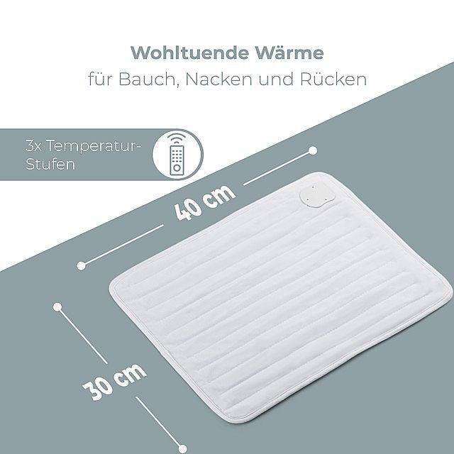 Vyhřívaný polštář pro vytvoření dlouhodobého a příjemného tepla nejde skvělé využití pro mrazivé zimní večery. Jeho teplota lze elektronicky nastavit do 3 úrovní. Polštář se po 90 minutách provozu vypne kvůli bezpečnosti. Zároveň je vybaven ochranou proti přehřátí. Potah lze odejmout pro snadnou údržbu a lze prát v pračce. Základnu lze hygienicky vyčistit. Jeho rozměry jsou přibližně 30 x 40 cm. Napájení je 220-240 V, 50 Hz a výkon 100 W.