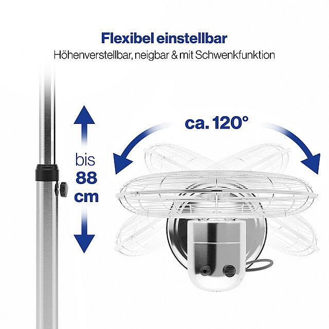 Stojanový ventilátor VL 3064 MS je velice robustní díky kvalitnímu kovovému pouzdru a použití kvalitních materiálů. Disponuje funkcí oscilace, která může být vypnuta. Zároveň disponuje možností nastavení výšky a úhlu sklonu. Ochranná mřížka, základna a kryt motoru jsou vyrobeny z kovu. Díky široké základně je ventilátor velice stabilní. Jeho výkon je 50 W a průměr 40 cm. Rychlost lze nastavit na pomalou, střední a rychlou. Napájení je 220-240 V, 50 Hz.