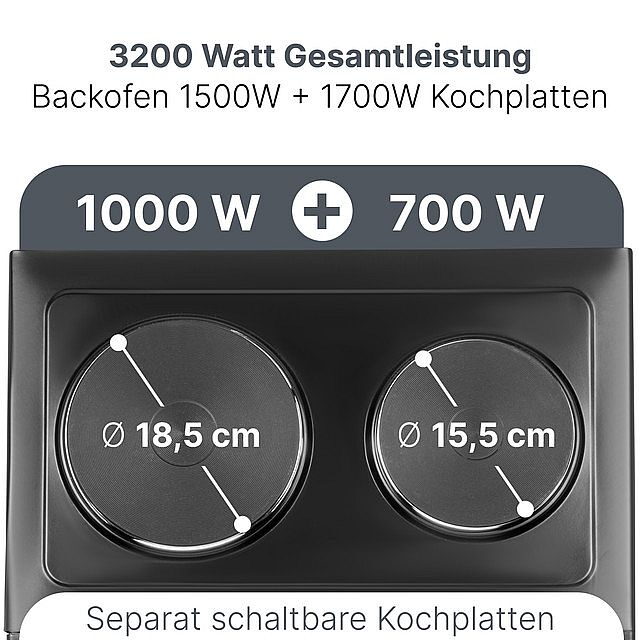 Malá kuchyně s troubou o objemu 32 litrů a dvěma samostatně spínatelnými plotýnkami je praktickým řešením do každé domácnosti, na chatu nebo do kanceláře. Nabízí široké možnosti použití a výkon srovnatelný s vestavnými troubami.