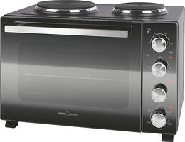 - Bohaté příslušenství: grilovací rošt, pečící plech, otočný rožeň, pizza kámen (O 30 cm), kleště pro vyjmutí grilovací mřížky a plech na pečení, nástroj pro vyjmutí otočného