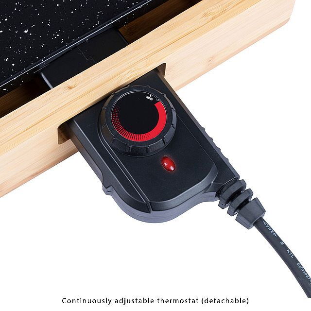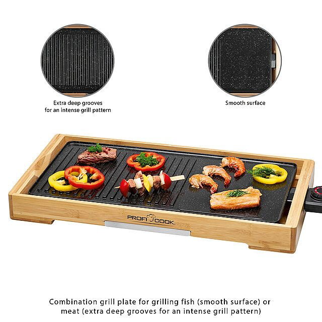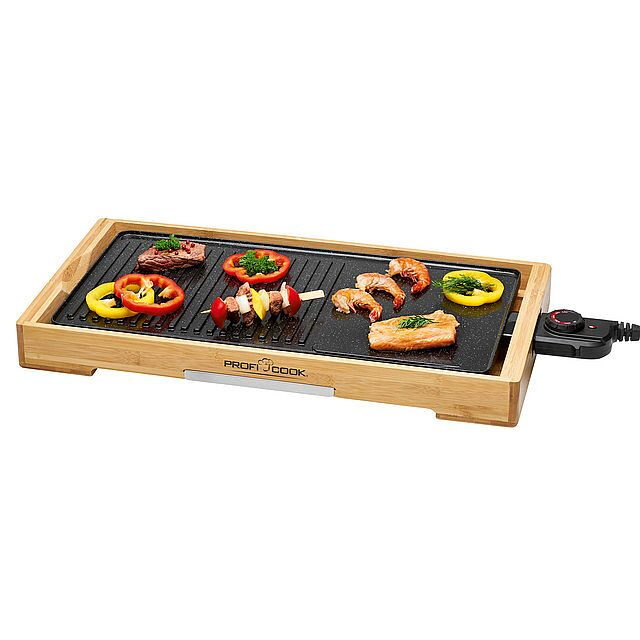 Teppanyaki gril TYG 1143 od značky ProfiCook se od ostatních liší tím, že je zasazený do bambusového rámu, který je šetrný k životnímu prostředí. Propojuje tak přírodní vzhled s tradiční japonskou kuchyní. Je ideální pro zdravé a nízkokalorické grilování. Grilovací desku o rozměrech 51 x 25 cm lze použít pro grilování ryb, zeleniny a masa. Grilovací plocha má keramický povrch a je odolná proti poškrábání. Lze jsi pro snazší čištění odpojit. Pro optimální odtékání přebytečné šťávy slouží kanálky, které je navedou do sběrné nádoby. Výhoda je, že není potřeba používat žádný tuk ani olej. Odpojitelný termostat lze plynule nastavovat. Celkový výkon je 2 200 W, napájení je 230 V/50 Hz.