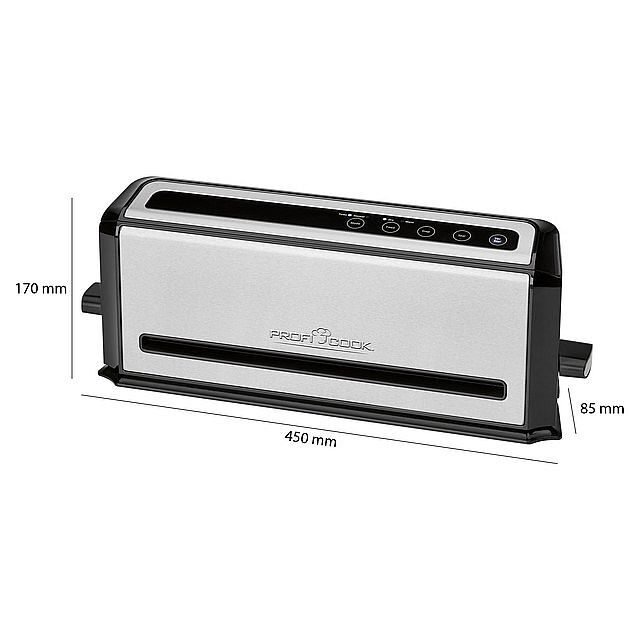 Tato svářečka vytváří na folii mimořádně silný svár, aby se zabránilo nežádoucímu otevření sáčku během skladování. Použití je velice jednoduché, protože v jednom kroku svářečka vytvoří svár a zároveň rozdělí folii. Výkon vakuové pumpy lze regulovat. Její maximální sací výkon je 12 litrů za minutu, což dokáže vytvořit 90% vakuum a -0,8 bar. Svářečka se nastavuje pomocí elektronického dotykového panelu. O provozu informují 4 kontrolky. Výhodou je nádoba pro sběr přebytečných tekutin a vlhkosti, to usnadňuje práci a následné čištění. Tuto svářečku lze použít buďto s originálními sáčky (doporučujeme), nebo s běžnými dostupnými sáčky pro svářečky folií o šířce max. 30 cm. V balení naleznete navíc 10 profesionálních sáčků, kdy 5 kusů je o rozměrech 22 x 30 cm, 5 kusů o rozměrech 28 x 40 cm a 1 role pak o rozměrech 20 x 200 cm. Tyto sáčky lze používat i pro vaření v mikrovlnné troubě. Na svářečce je prostor pro umístění napájecího kabelu pro jednodušší transport nebo skladování. Je zaručena vysoká stabilita během provozu. Napájení je 220-240 V, 50/60 Hz a výkon 110 W.