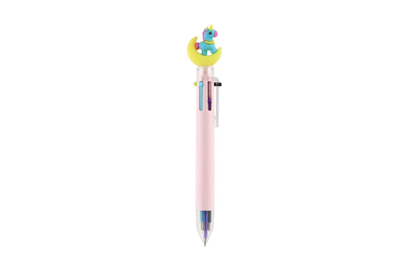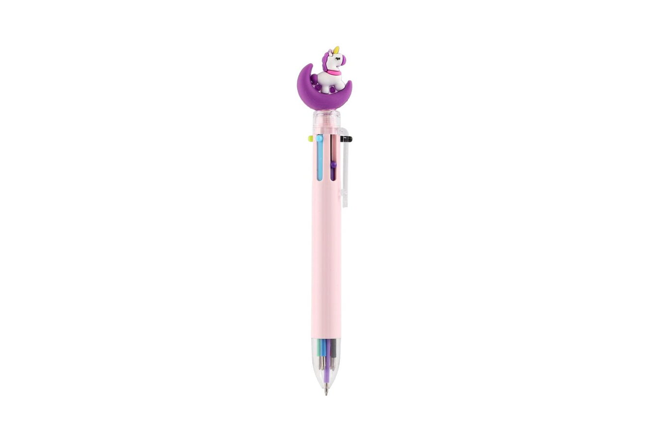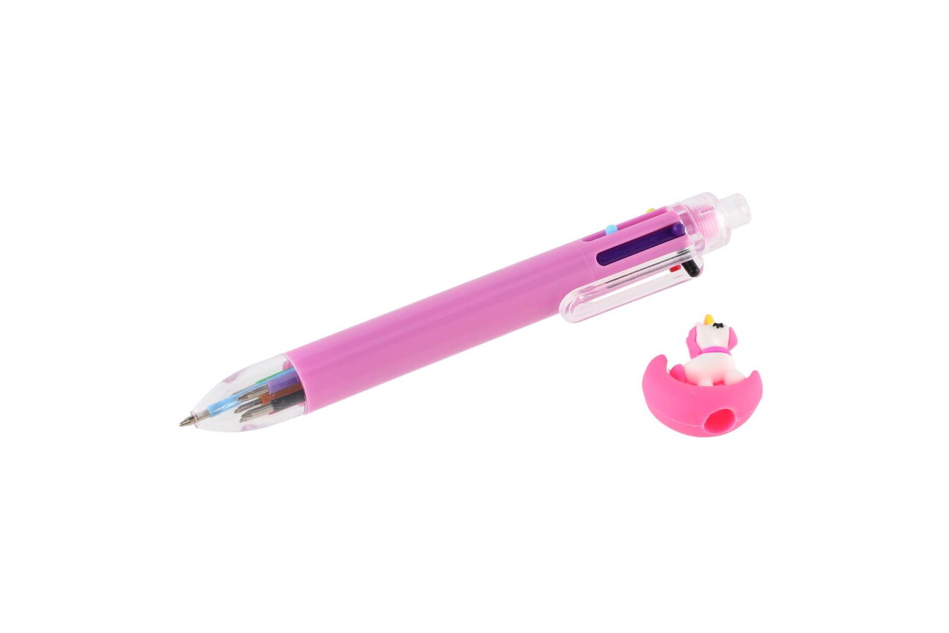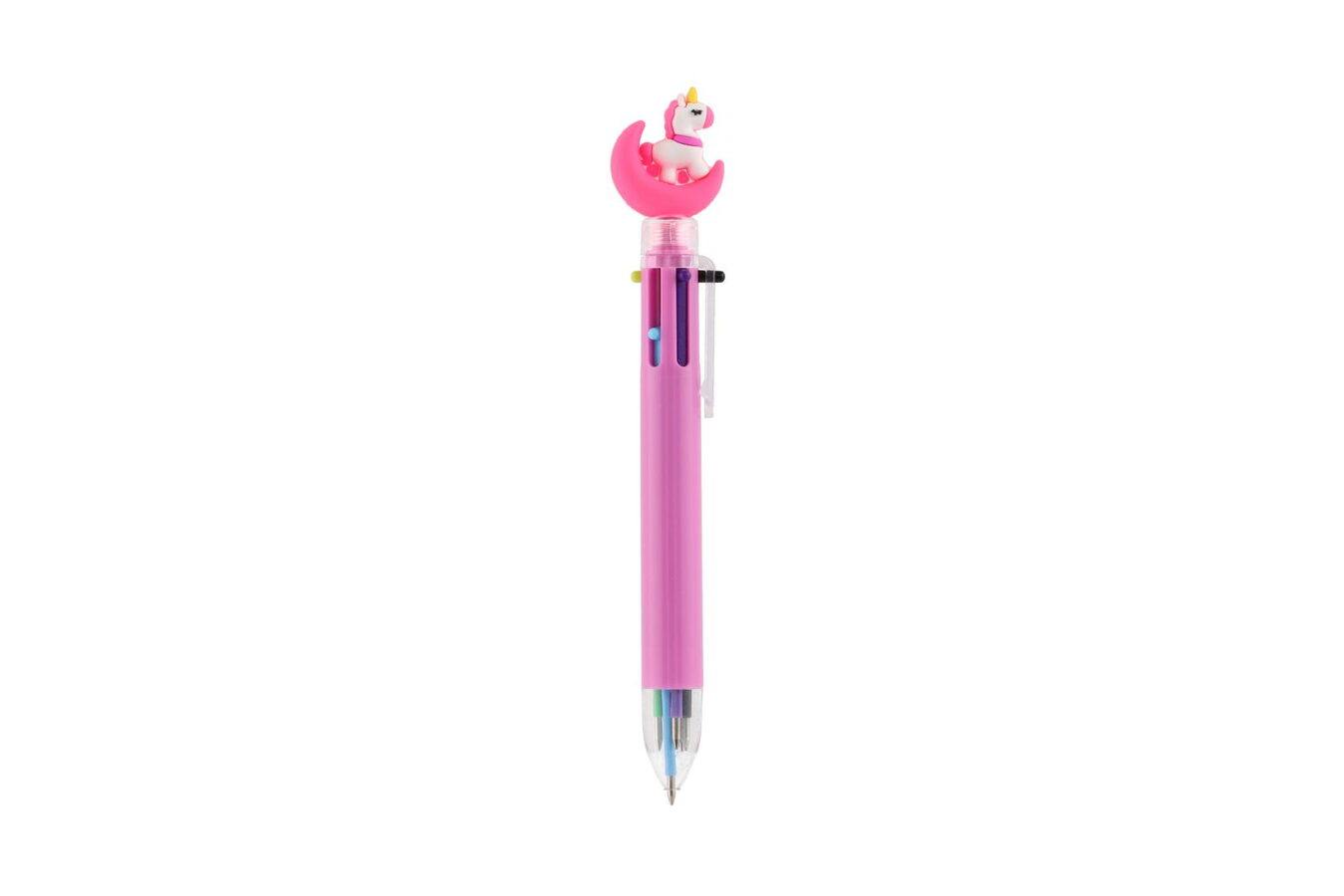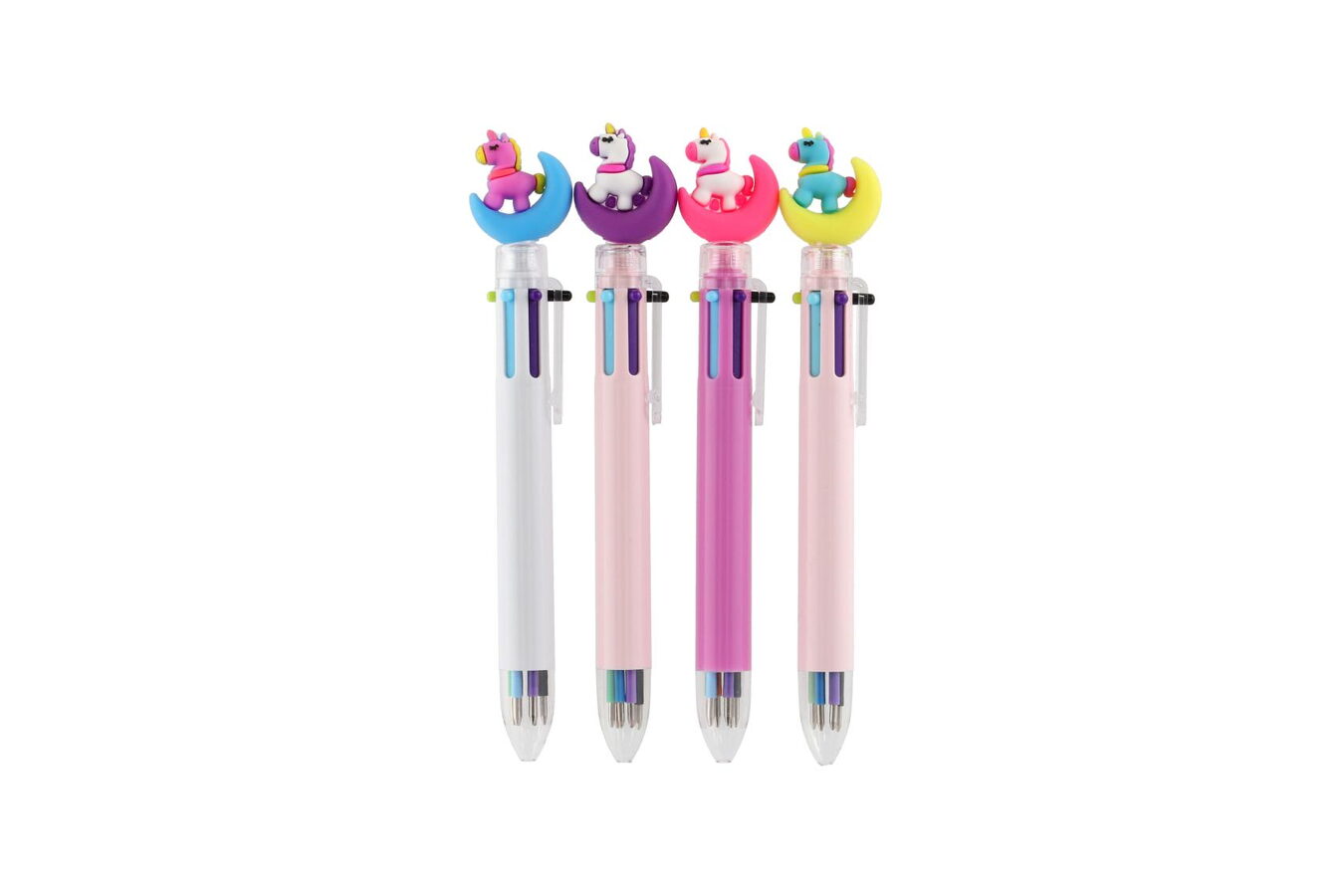 6ti barevná propiska s motivem jednorožce je skvělým pomocníkem nejen pro školáky. Změň si kdykoli barvu náplně přepnutím barvy jiné. Velikost pera je 17 cm. Není hračka.