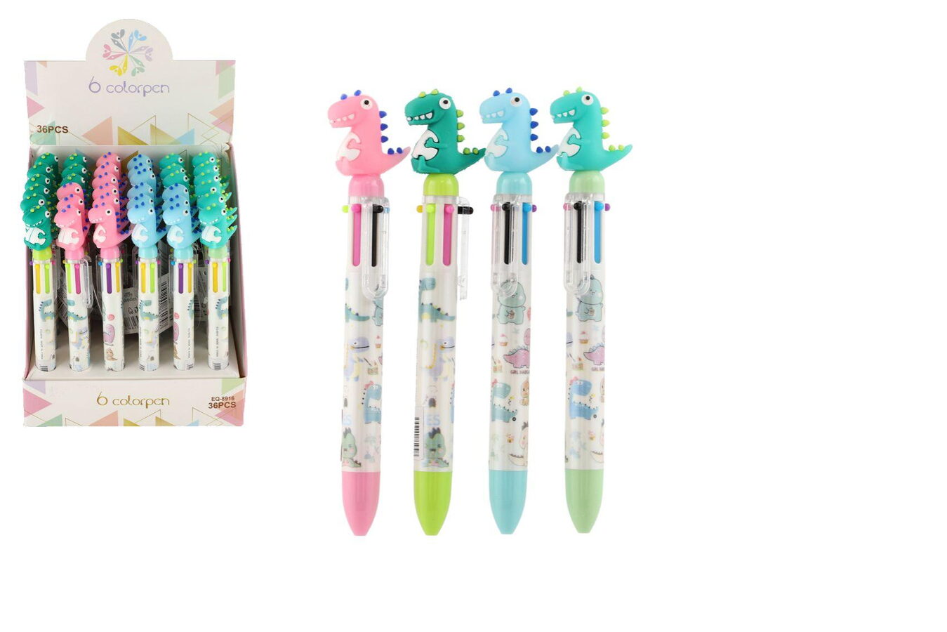 Nápaditá propiska s motivem dinosaura prostě baví! Uvnitř se ukrývá 6 barevných tuh, které lze libovolně měnit. Děti si ji oblíbí jak do školy, tak na doma. Změň barvu stlačením černé tuhy.