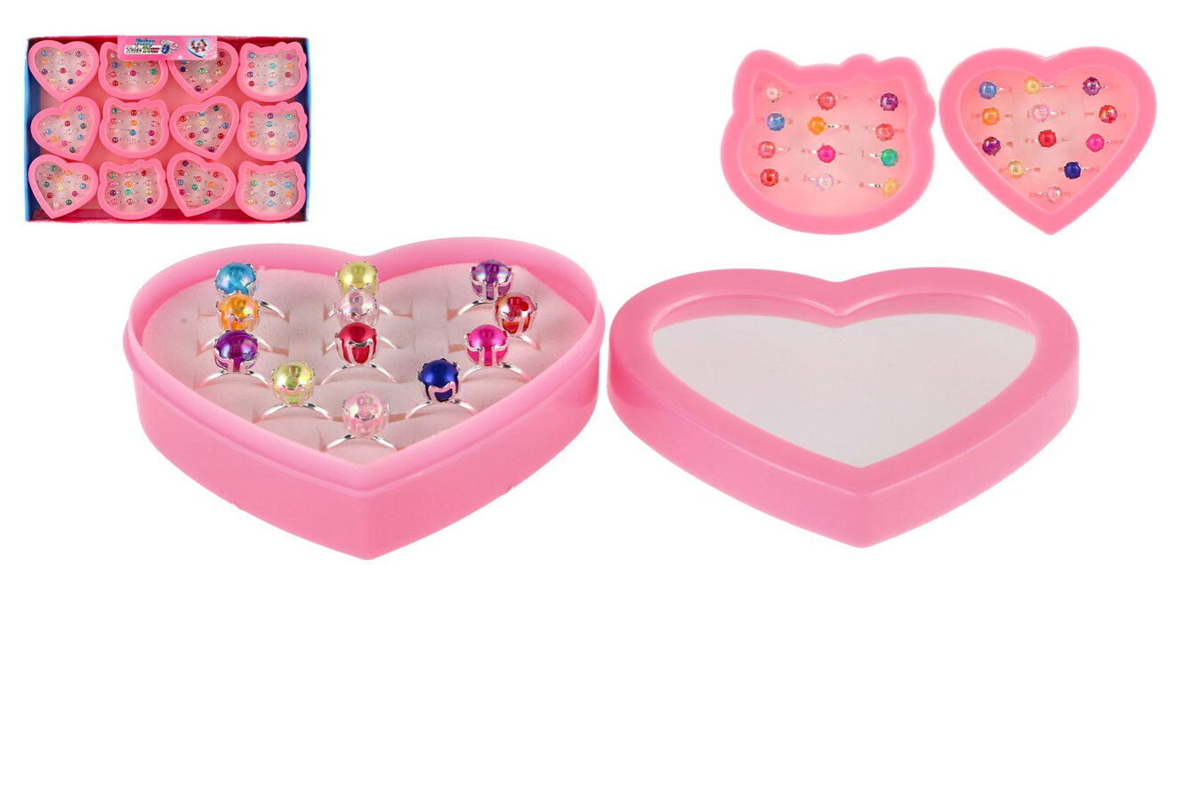 Prstýnek/Prstýnky s perlou kov/plast 12ks nastavitelná velikost v plast. krabičce 9x8cm 12ks v boxu
