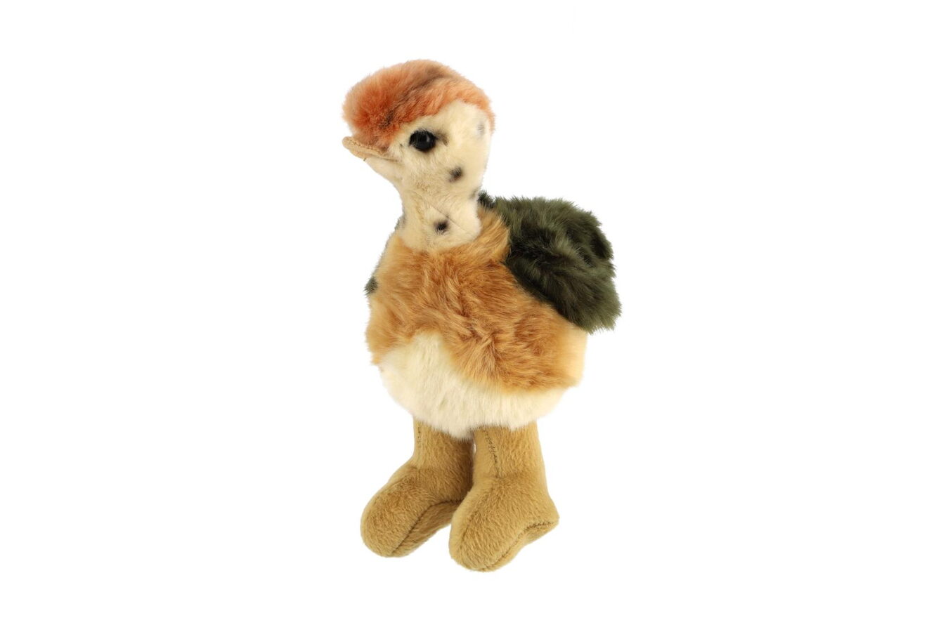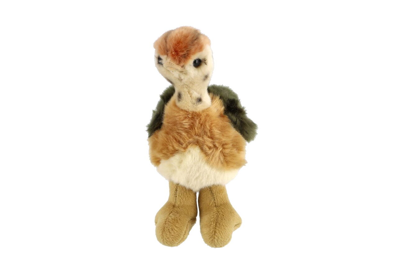 Jeho velké, lesklé oči dodávají pštrosíkovi výraz plný zvídavosti a přátelství, což z něj činí ideálního kamaráda na každý den. Velikost 20 cm je perfektní pro dětské ruce – pštrosí mládě je skvělé na mazlení, hraní nebo jako designový doplněk do pokojíku.