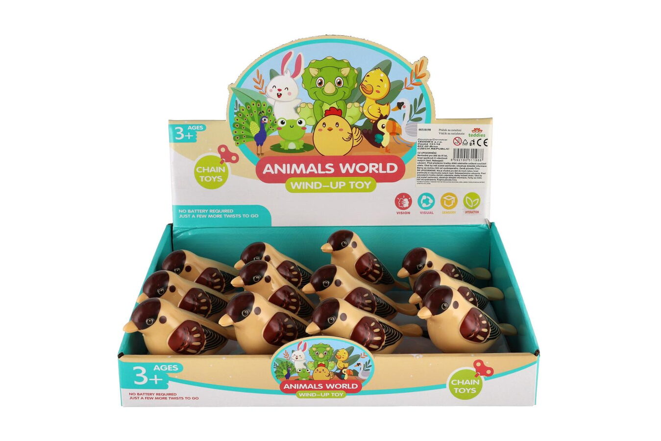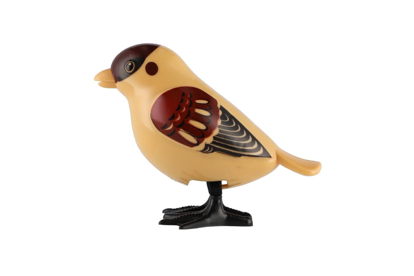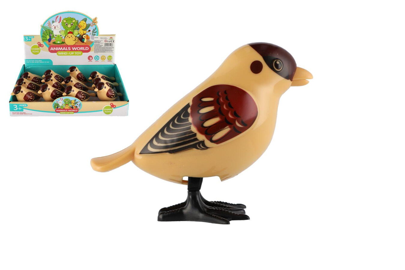 Rozkošný plastový ptáček na klíček, který po natažení vesele skáče po stole nebo podlaze. Jednoduchý mechanický pohyb z něj dělá oblíbenou hračku pro děti, které milují zvířátka a pohyb.