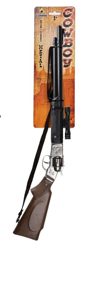 Kovbojská puška černá, kovová na kapslíky – 8 ran. Velikost pušky 68×16,5 cm. Vyrobeno ve Španělsku.