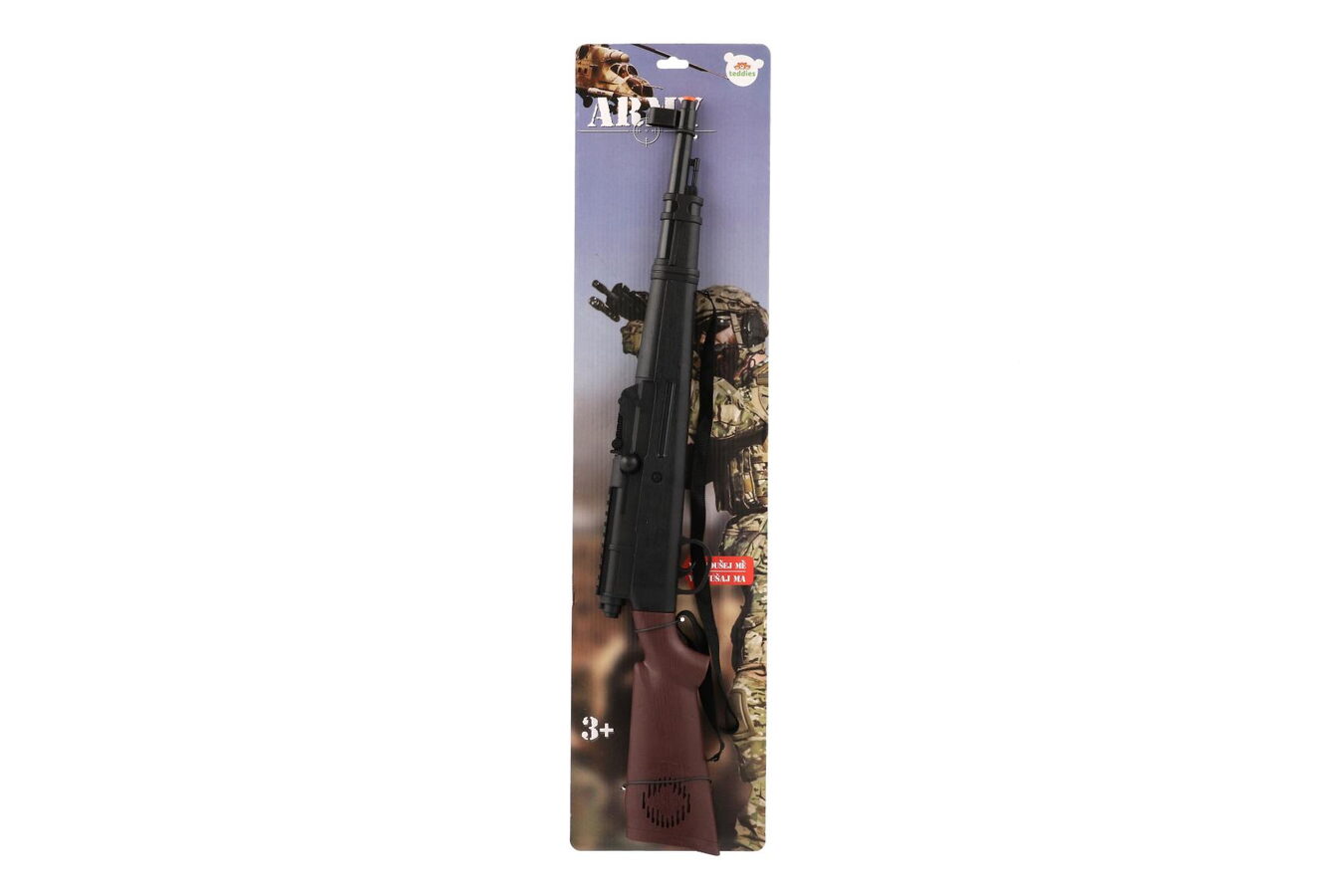 Čeká tě náročná mise! Máš za úkol ochránit tábor před nepřátelským vojskem! Vydej se na průzkum terénu a dohlédni na to, aby tábor byl v bezpečí! Parádní puška je s popruhem a žádný nepřítel proti tobě nemá šanci! Puška je velikosti 71 cm.