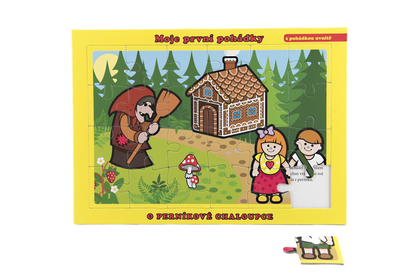 Deskové puzzle O Perníkové chaloupce je perfektním spojením pohádky a stavění puzzle, které děti milují. Pod sestaveným obrázkem s motivem tradiční české pohádky ji najdete psanou.