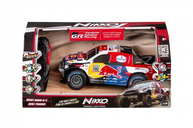 RC model Toyota Dakar 1:18 se světly. Detailně zpracovaný terénní vůz na dálkové ovládání inspirovaný soutěží Dakar. Model je vybaven funkčním předním osvětlením, gumovými pneumatikami a odolnou karoserií pro jízdu v terénu. Poháněn dobíjecími bateriemi, ovládán 2,4 GHz dálkovým ovladačem, nabízí realistickou jízdu až 15 km/h a dobu provozu cca 20–25 minut. Ideální pro děti i sběratele RC vozidel.