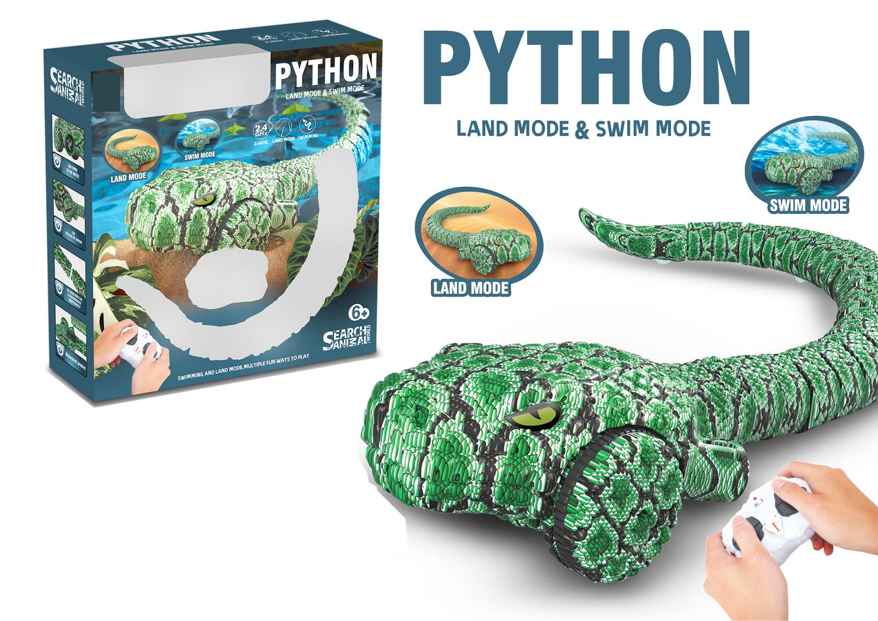Obojživelný RC plaz pro dokonalé dobrodružství! Objevte vzrušující svět dálkově ovládaných tvorů s touto realistickou RC krajtou! Tento úžasně detailní a překvapivě obojživelný had vám přinese nezapomenutelné okamžiky zábavy na souši i ve vodě. Díky pokročilému pohybovému mechanismu se had plazí a vlní jako opravdový plaz! Klíčové vlastnosti: Obojživelné schopnosti: Dva herní režimy umožňují použití na souši i ve vodě! Realistický pohyb: Pohyblivé části dokonale simulují plazení a vlnění těla skutečného hada Autentický vzhled: Dvojitý spirálový design a speciální textura povrchu vytváří realistický vzhled Výkonný dosah: Dálkové ovládání s dosahem 30-40 metrů Impozantní rychlost: Dosahuje rychlosti 8-10 km/h Ovládání a funkce: Intuitivní ovladač: Jednoduché ovládání pro pohyb všemi směry (vpřed/vpravo/vlevo/stop) Vizuální signalizace: Červený indikátor signálu pro snazší kontrolu funkčnosti Přesné manévrování: Citlivé ovládání umožňuje mrštné a rychlé změny směru Technická specifikace: Napájení hada: 4x AAA 1,5V baterie (nejsou součástí balení) Napájení ovladače: 3x AAA 1,5V baterie (nejsou součástí balení) Max. rychlost: 8-10 km/h Dosah ovladače: přibližně 30-40 metrů Prostředí použití: vhodný na souš i do vody Tento fascinující RC had přináší zcela nový rozměr zábavy s dálkově řízenými hračkami! Díky realistickému pohybu a schopnosti fungovat jak na souši, tak ve vodě poskytne hodiny vzrušující zábavy pro děti i dospělé. Bezpečnostní pokyny: Používejte pod dohledem dospělé osoby. Nepoužívejte v blízkosti dětí, zvířat a na pozemních komunikacích. Zabraňte kontaktu rukou, vlasů a oděvu s pohyblivými součástmi. Hračku vždy vypněte před manipulací.Poznámka: Nevhodné pro děti do 3 let. Baterie nejsou součástí balení.