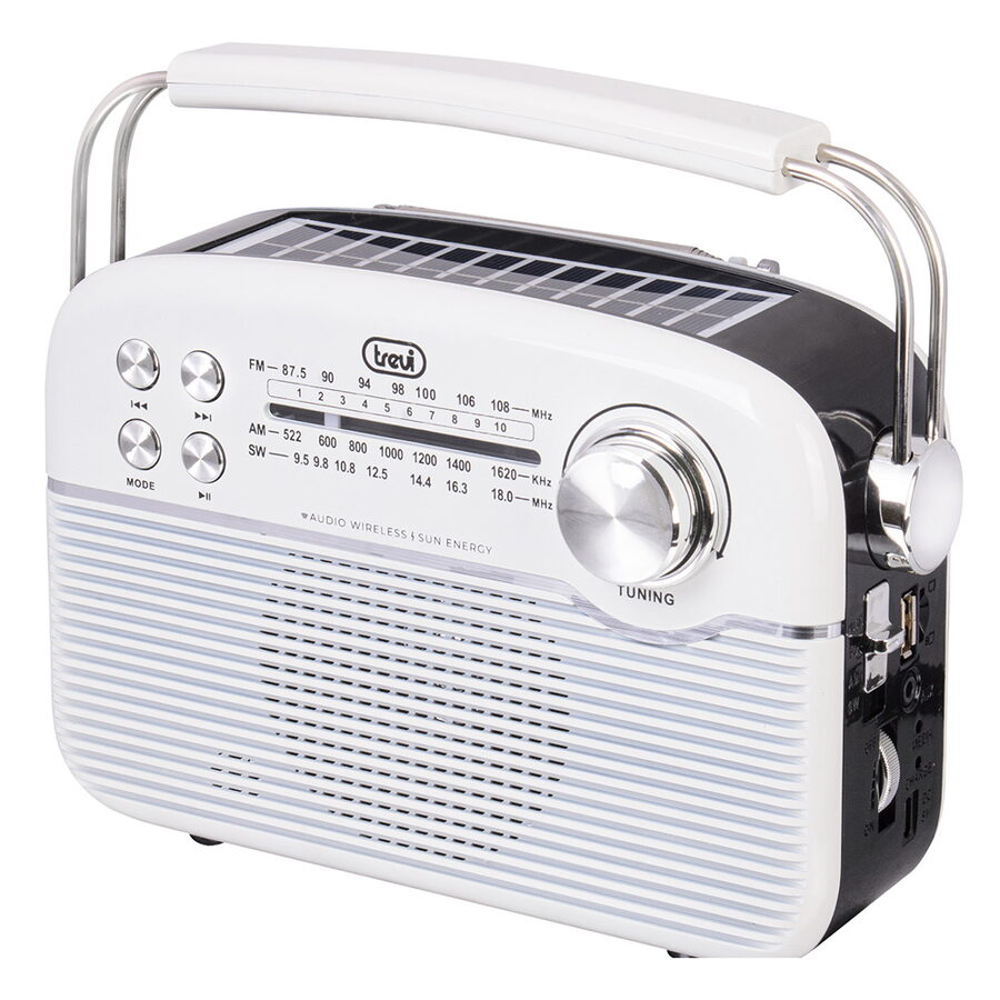 Trevi RA 7F50 BT je kompaktní přenosné rádio v retro stylu, které kombinuje klasické analogové ladění s moderními funkcemi.