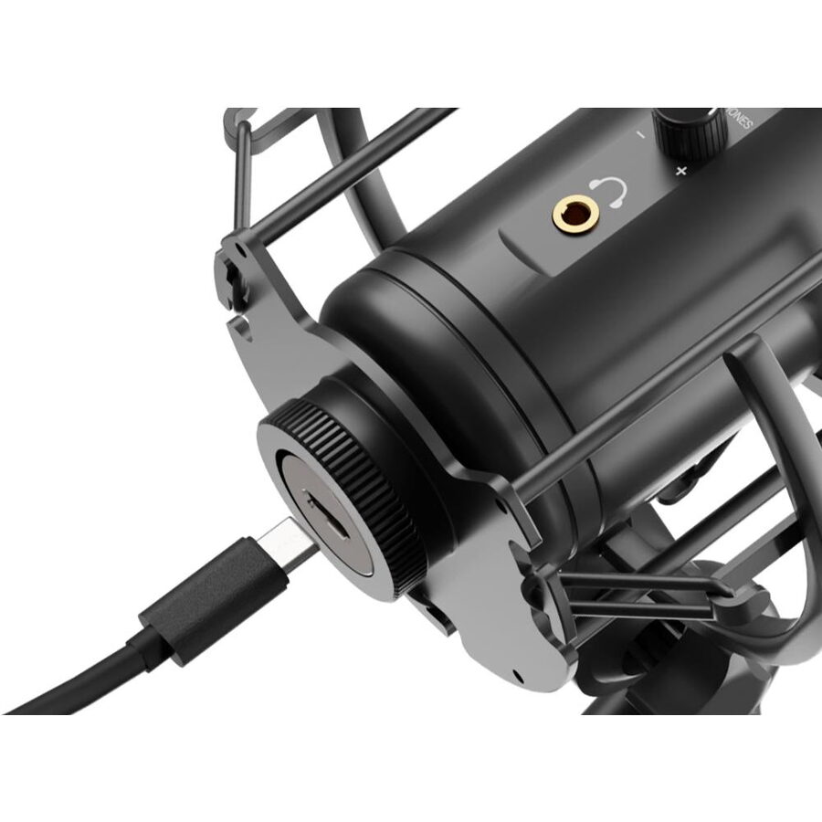 Díky speciálnímu konektoru Jack 3,5 mm na přední straně mikrofonu máte možnost připojit sluchátka přímo k mikrofonu Radium 600 G2. Monitorování v reálném čase je užitečné zejména při živém vysílání. Samotný mikrofon navíc můžete připojit pomocí kabelu USB-C, nikoli USB-B, jako tomu bylo u předchůdce.