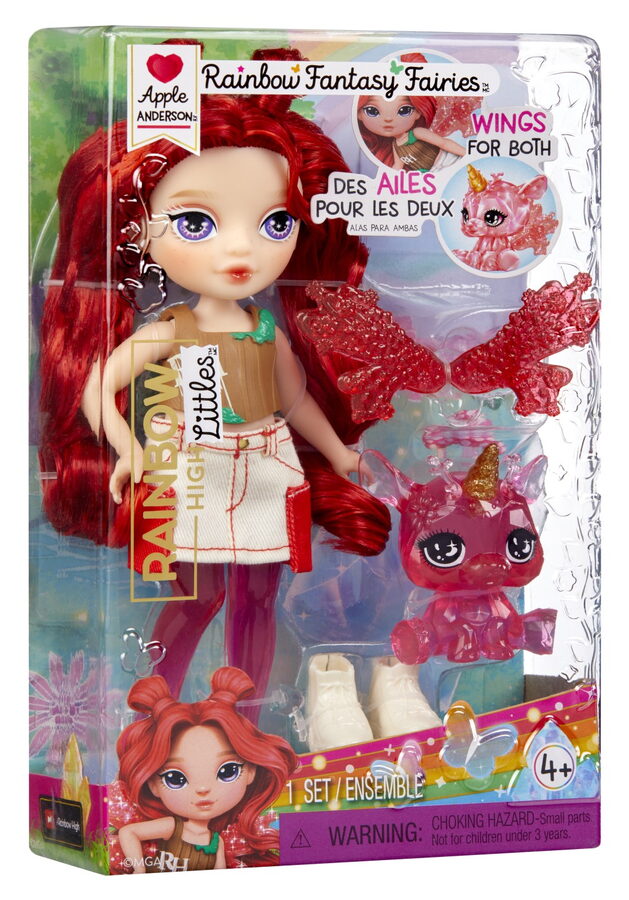 Obsah balení: • 1 panenka Apple s dlouhými česatelnými vlásky a kompletním outfitem • 1 pár křídel • 1 mazlíček • 1 pár bot